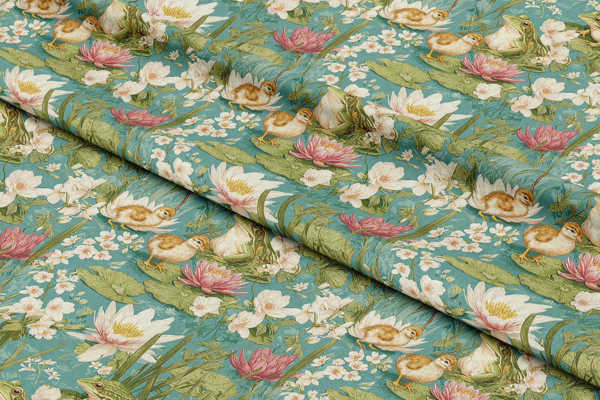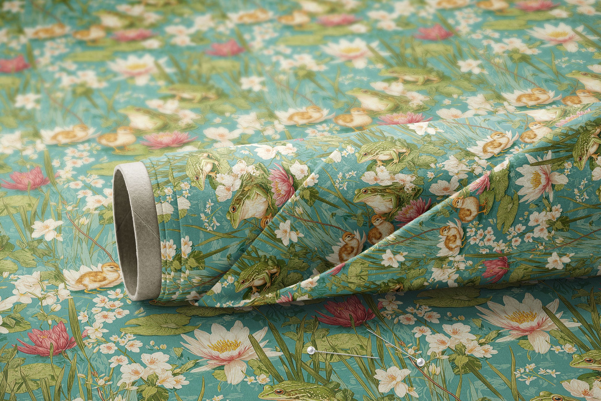Frogs, Ducklings, and Floral Pond - Digital Seamless Pattern