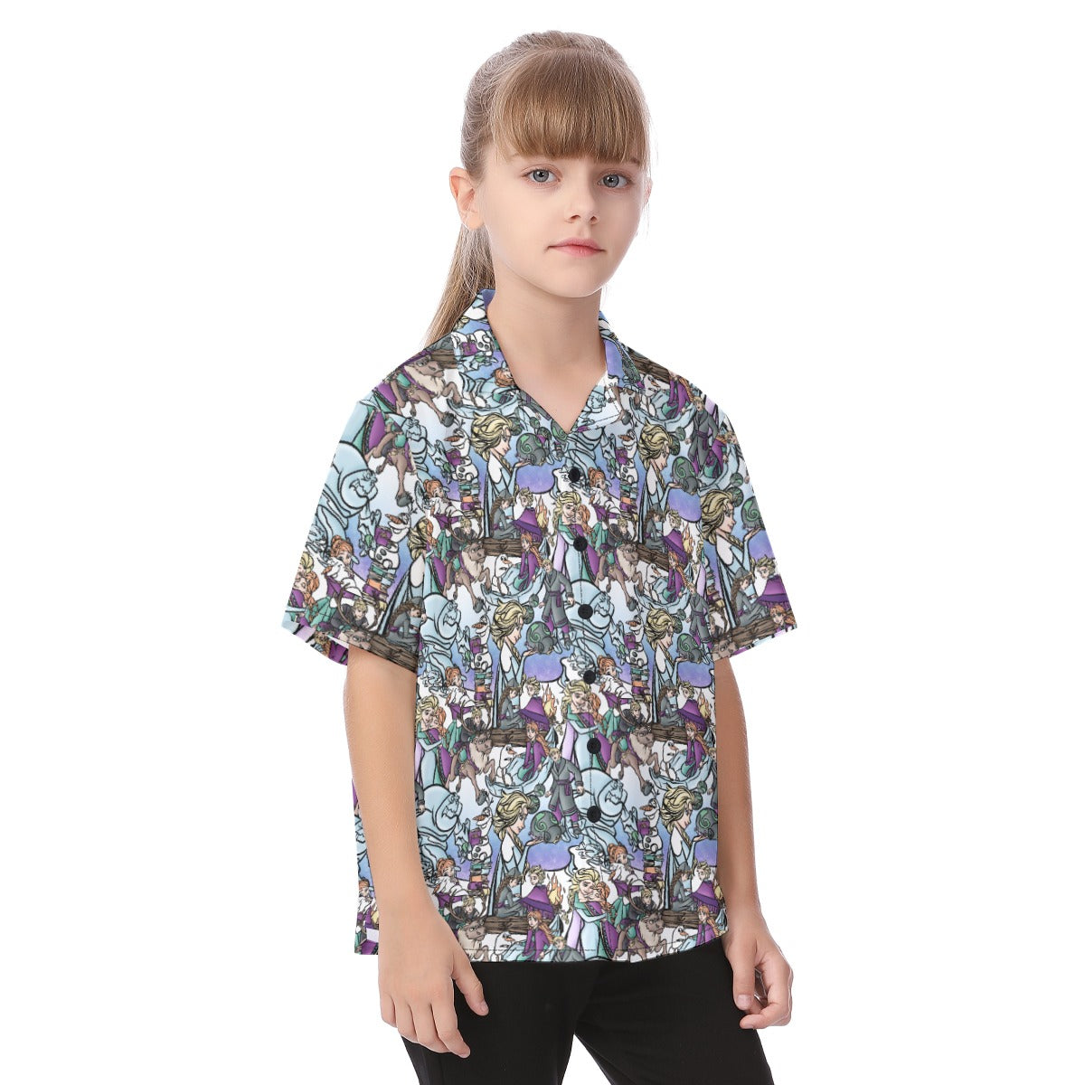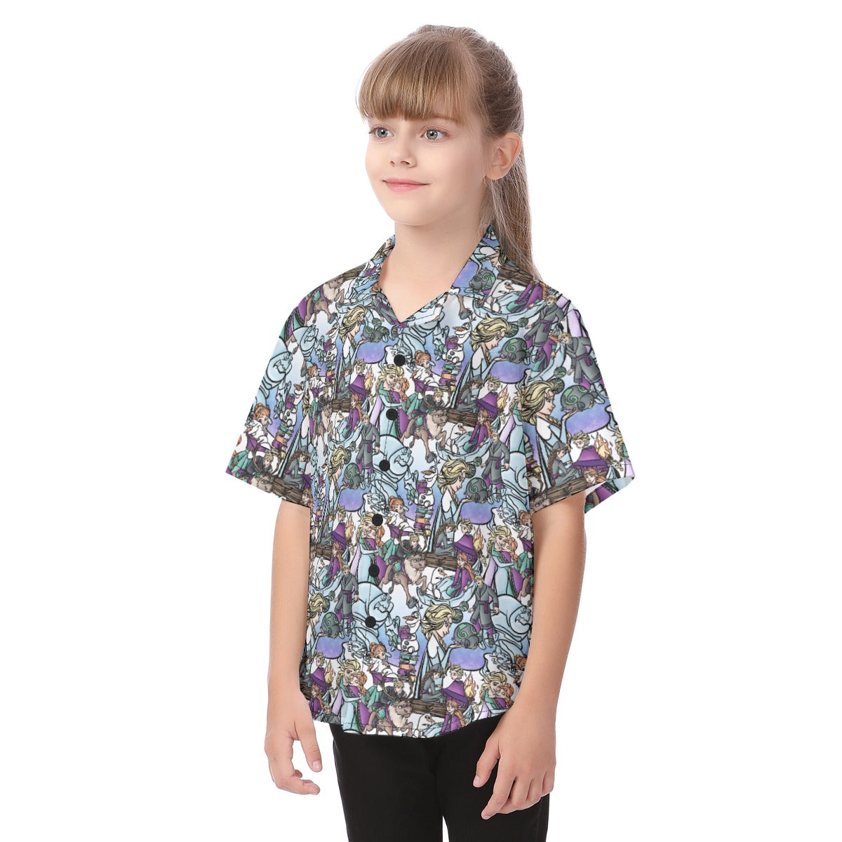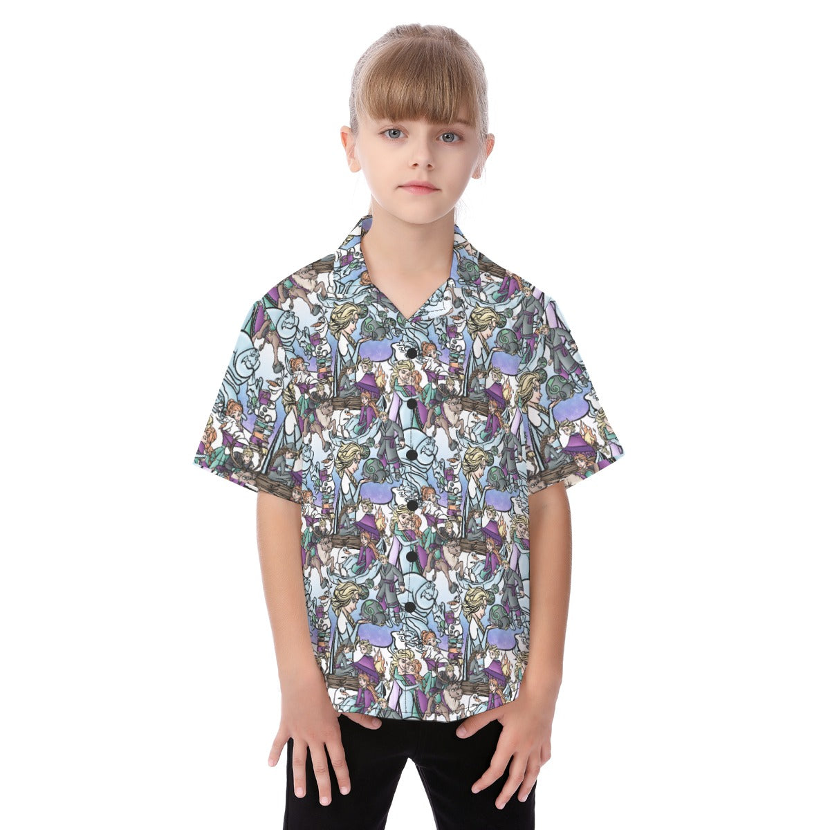 Enchanted Winter Journey - Kid's Hawaiian Button Up Shirt