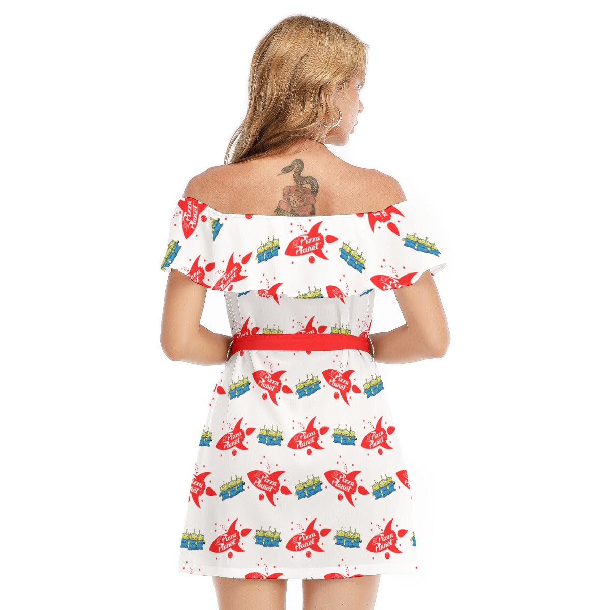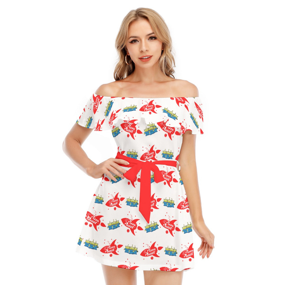 Galactic Rocket Party - Women's Off-shoulder Ruffle Dress