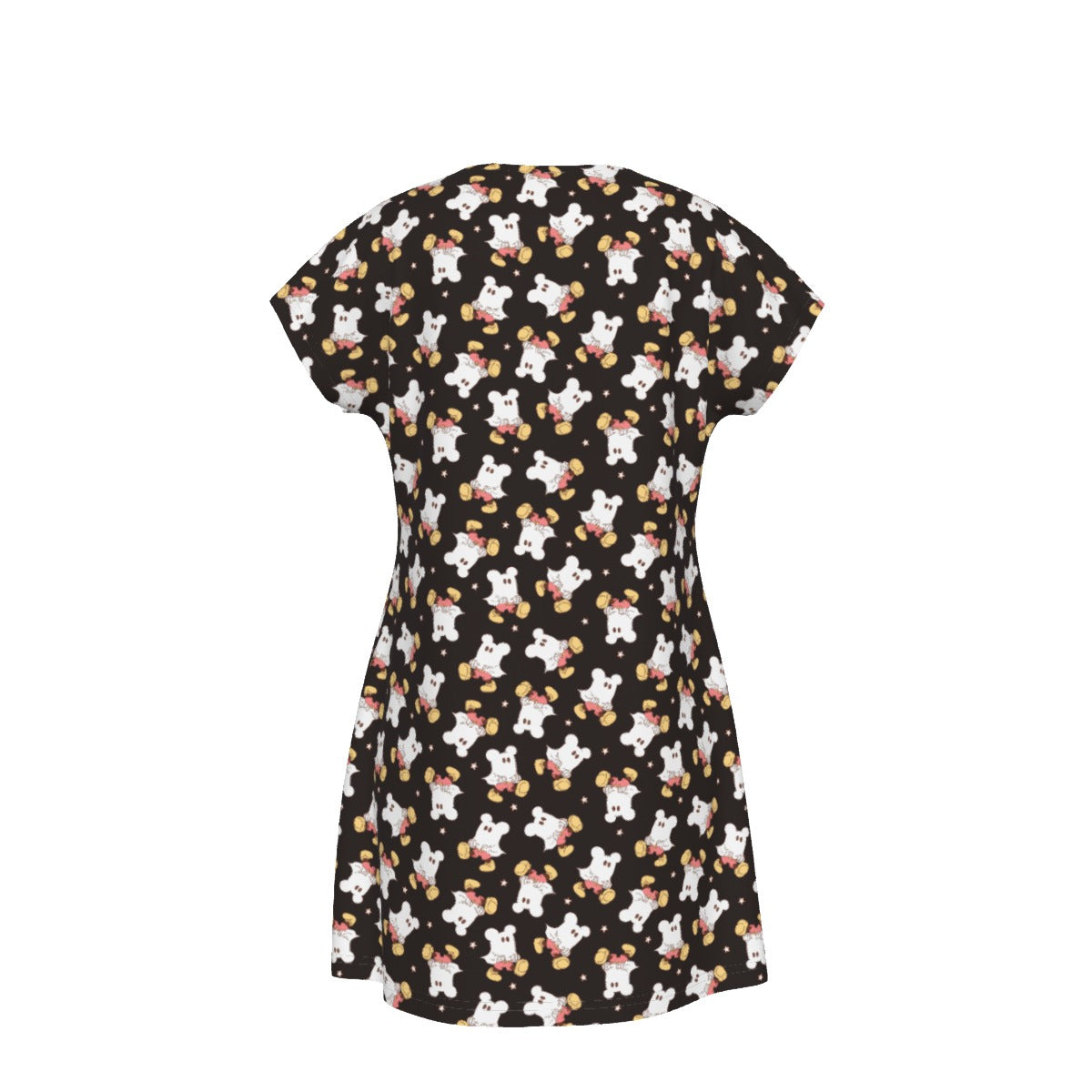 This charming print features a playful ghostly character wearing classic yellow shoes and red shorts, floating across a starry black sky. Cute with a touch of spooky, it’s a timeless favorite for those who love fun Halloween vibes.