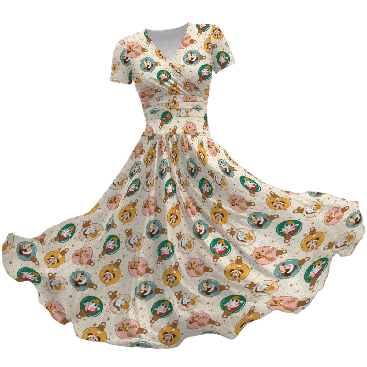 Golden Holiday Baubles - Women's V-Neck Ruched Midi Dress