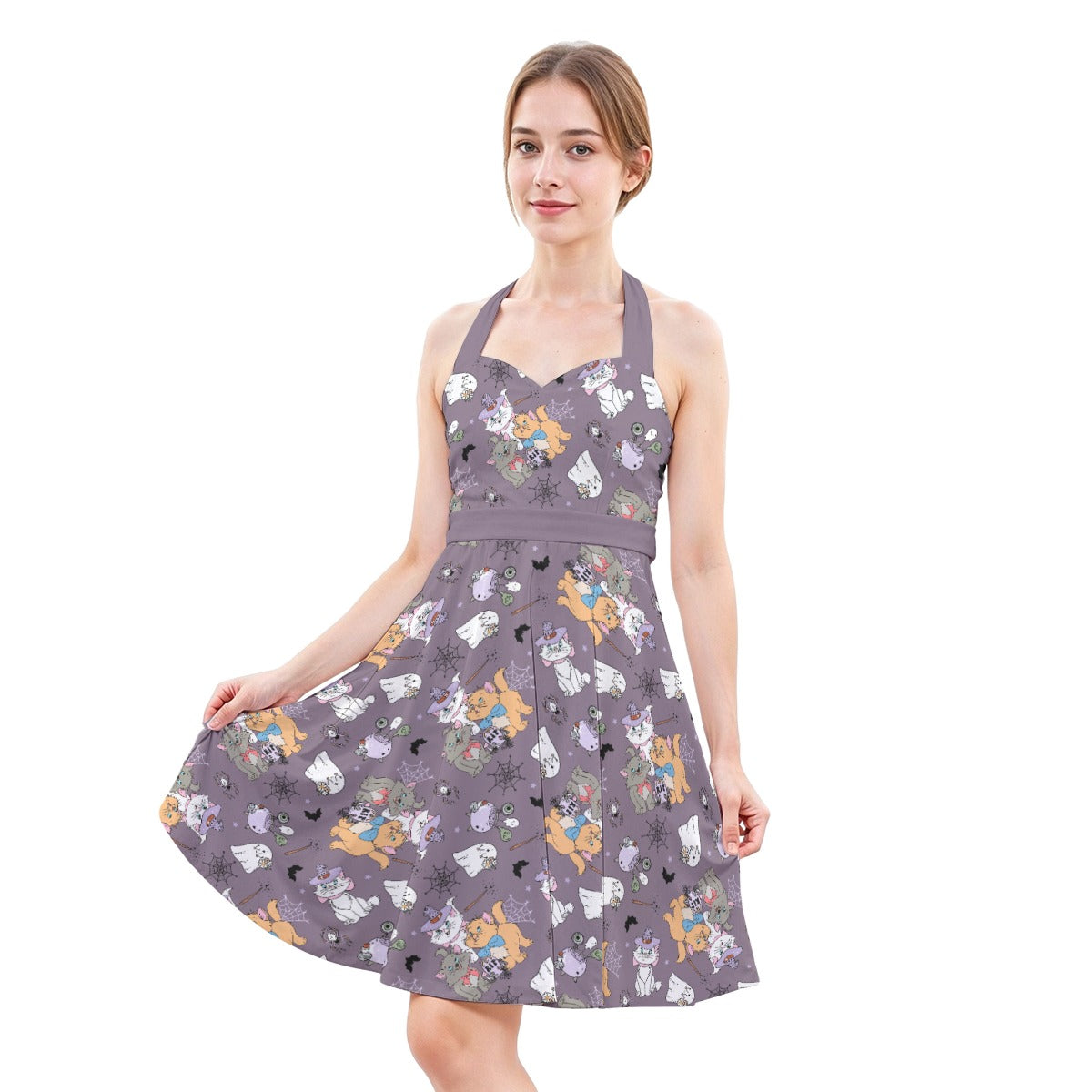 Spooky Fancy Felines - Women's Halter Vintage Pocket Dress