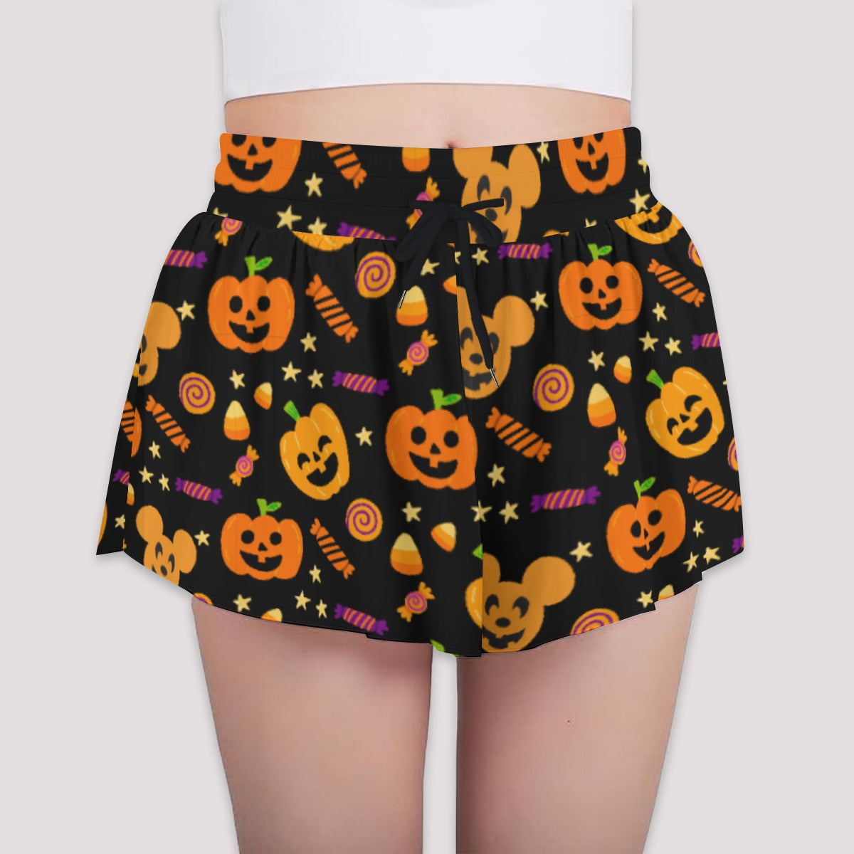 Cheerful Pumpkin Mouse Halloween - Girls’ Flowy Pocket Shorts