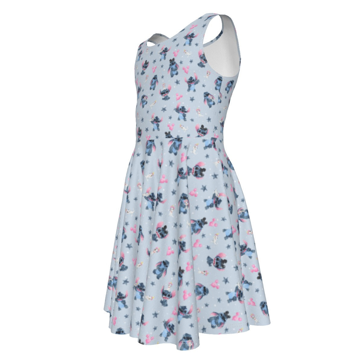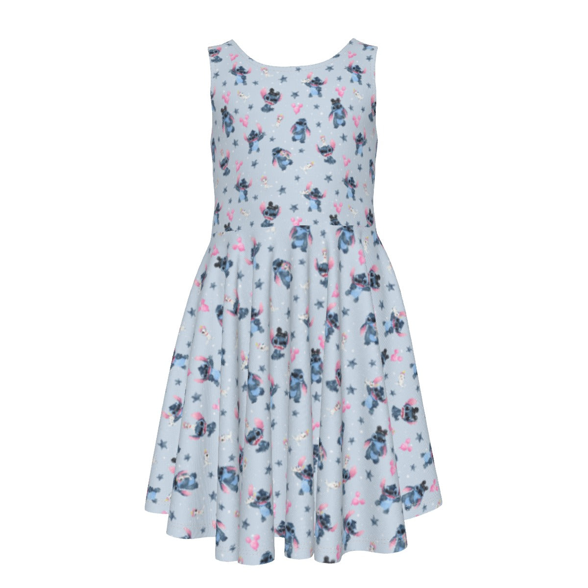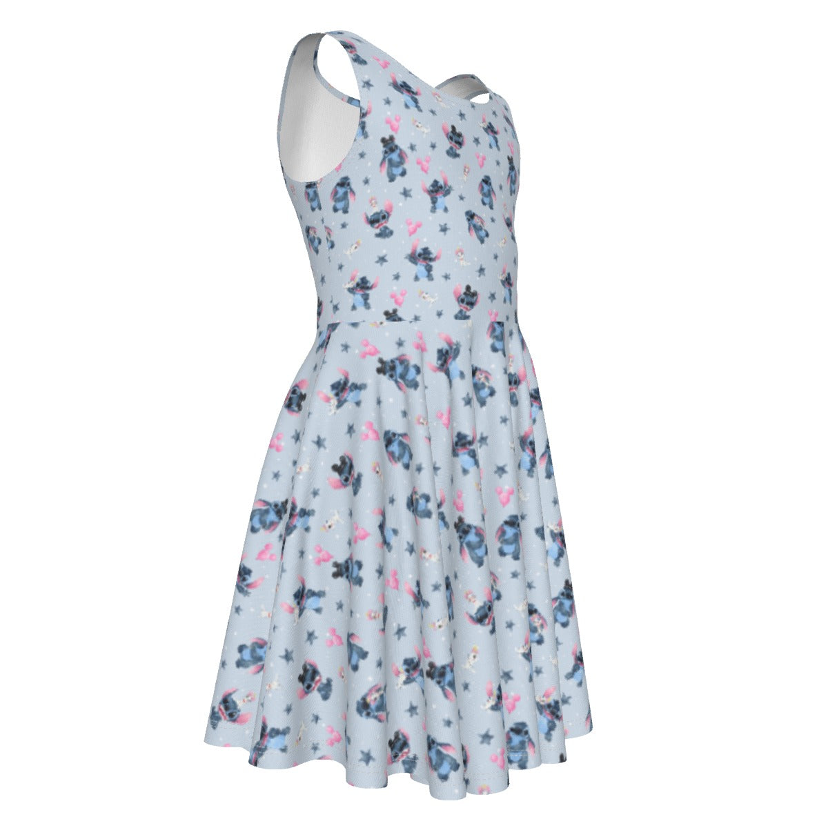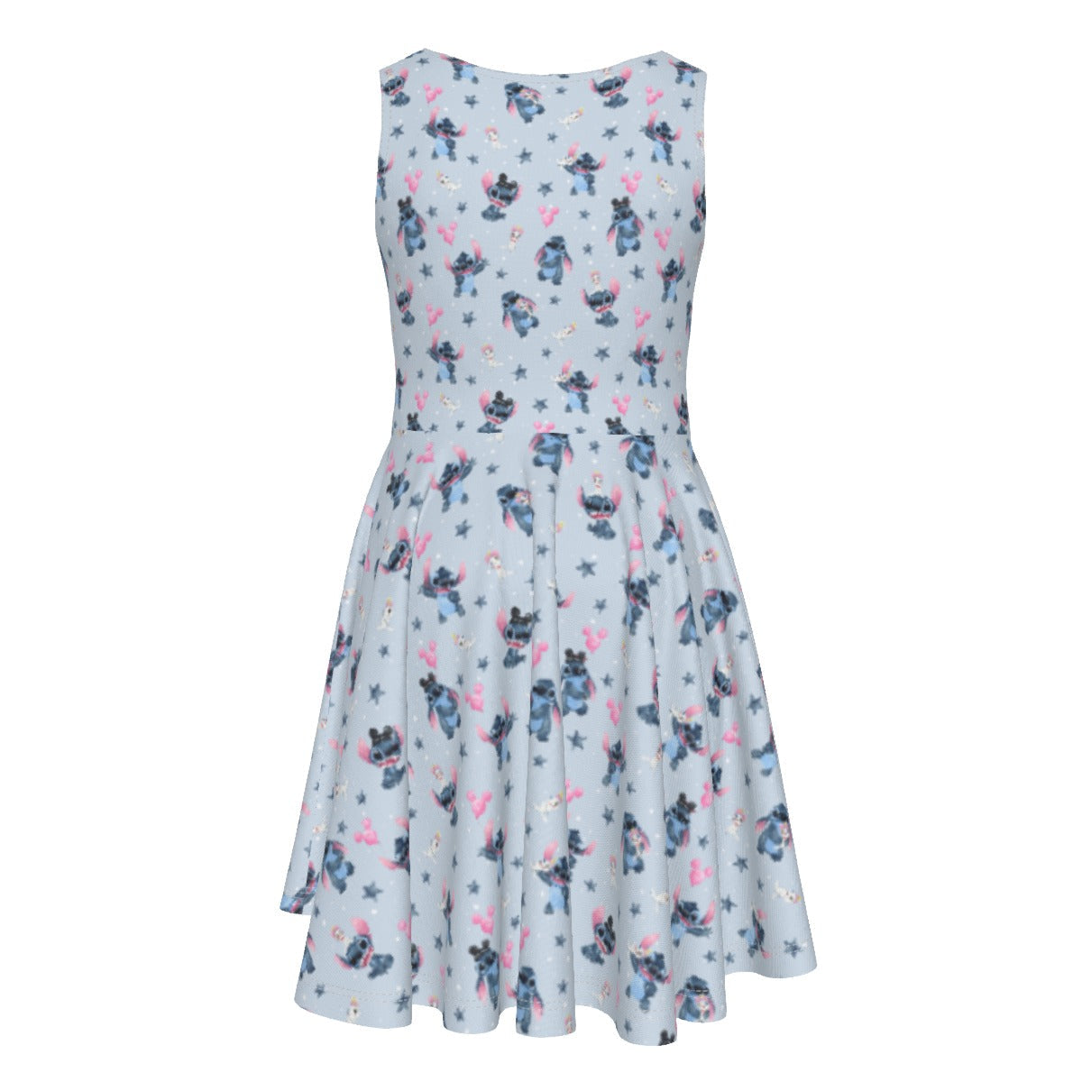 Happy Blue Alien - Kid's Sleeveless Skater Dress