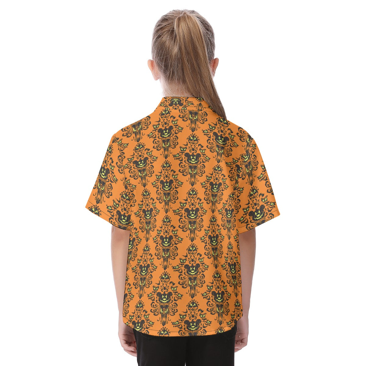 Haunted Halloween Mansion Wallpaper - Kid's Hawaiian Button Up Shirt