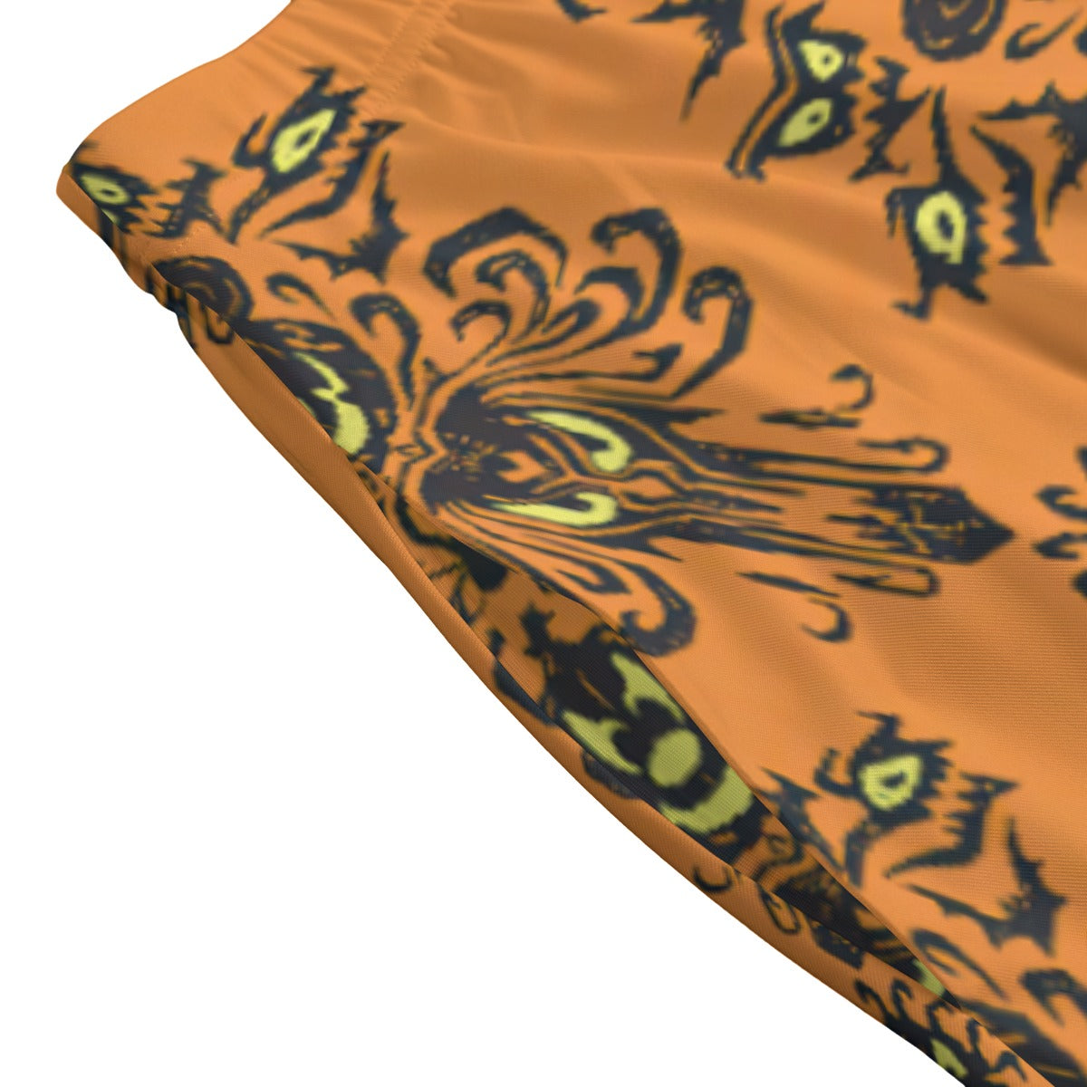A spooky twist on a classic! This bold orange pattern blends haunted mansion wallpaper vibes with glowing pumpkin faces and eerie Halloween expressions. Perfect for fans who like their spooky with a splash of cute.