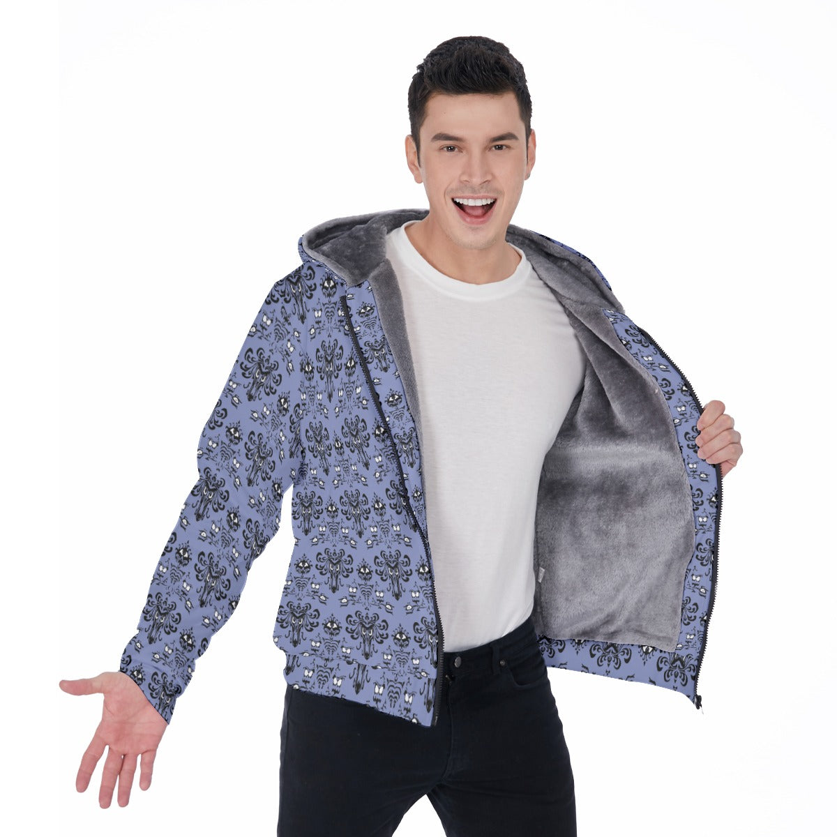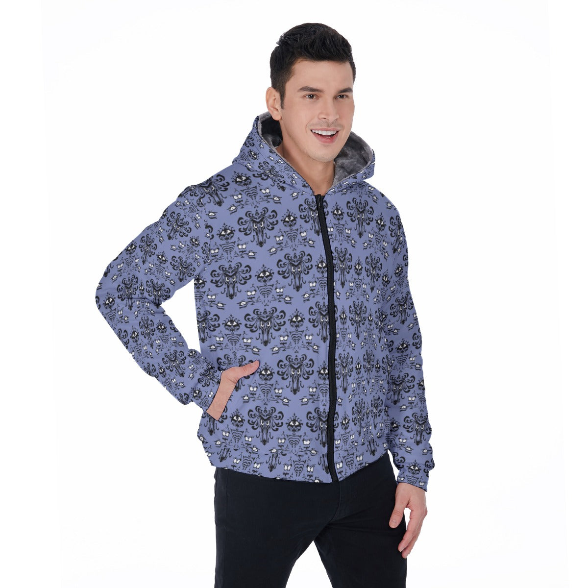 Step into spooky elegance with this iconic Victorian gothic wallpaper-inspired print! Perfect for those who want to make their visit a little more "spirited" - this design captures the essence of vintage haunted mansion aesthetics with intricate damask patterns and mysterious motifs. Whether you're planning a magical vacation or just want to add some ghostly charm to your wardrobe, this all-over seamless print brings that beloved attraction atmosphere wherever you go.
