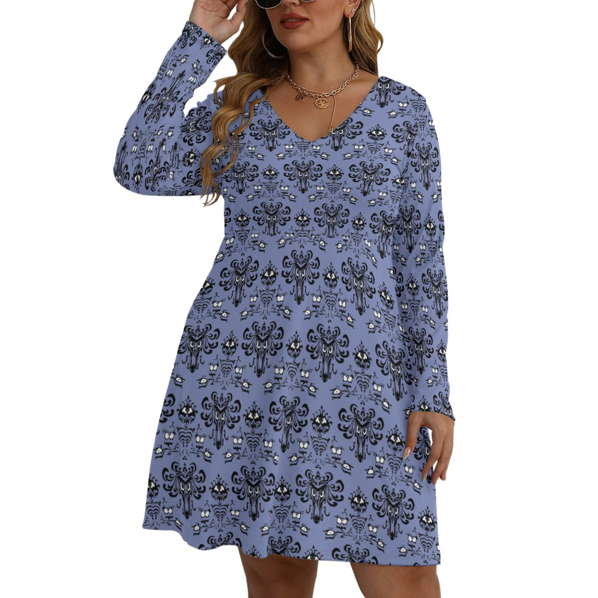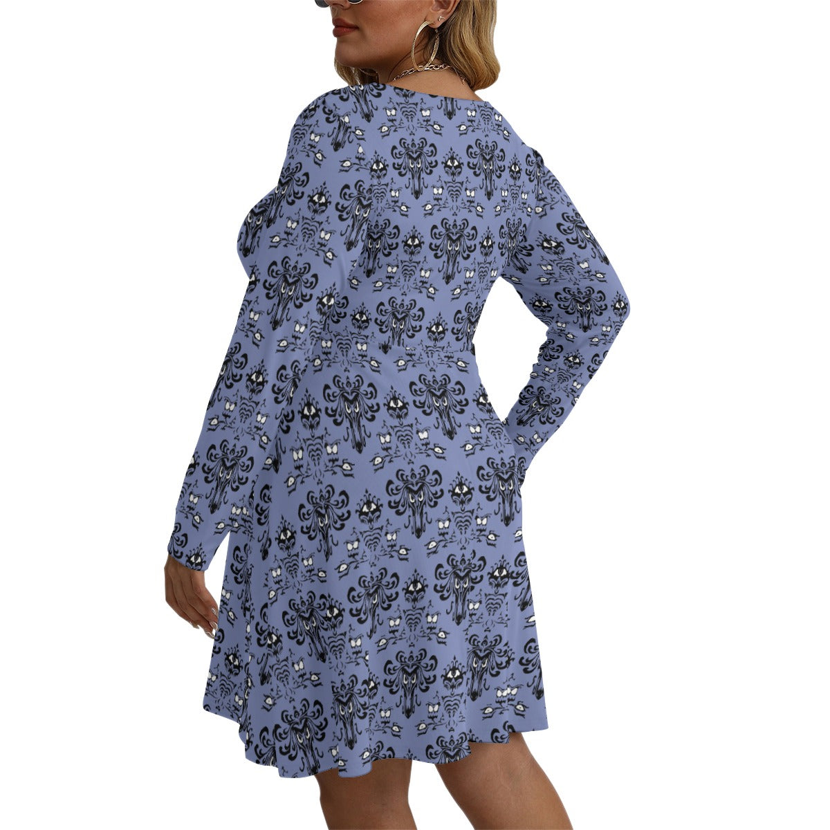 Spooky Mansion Wallpaper - Women’s Long Sleeve High-Waist A-Line Dress