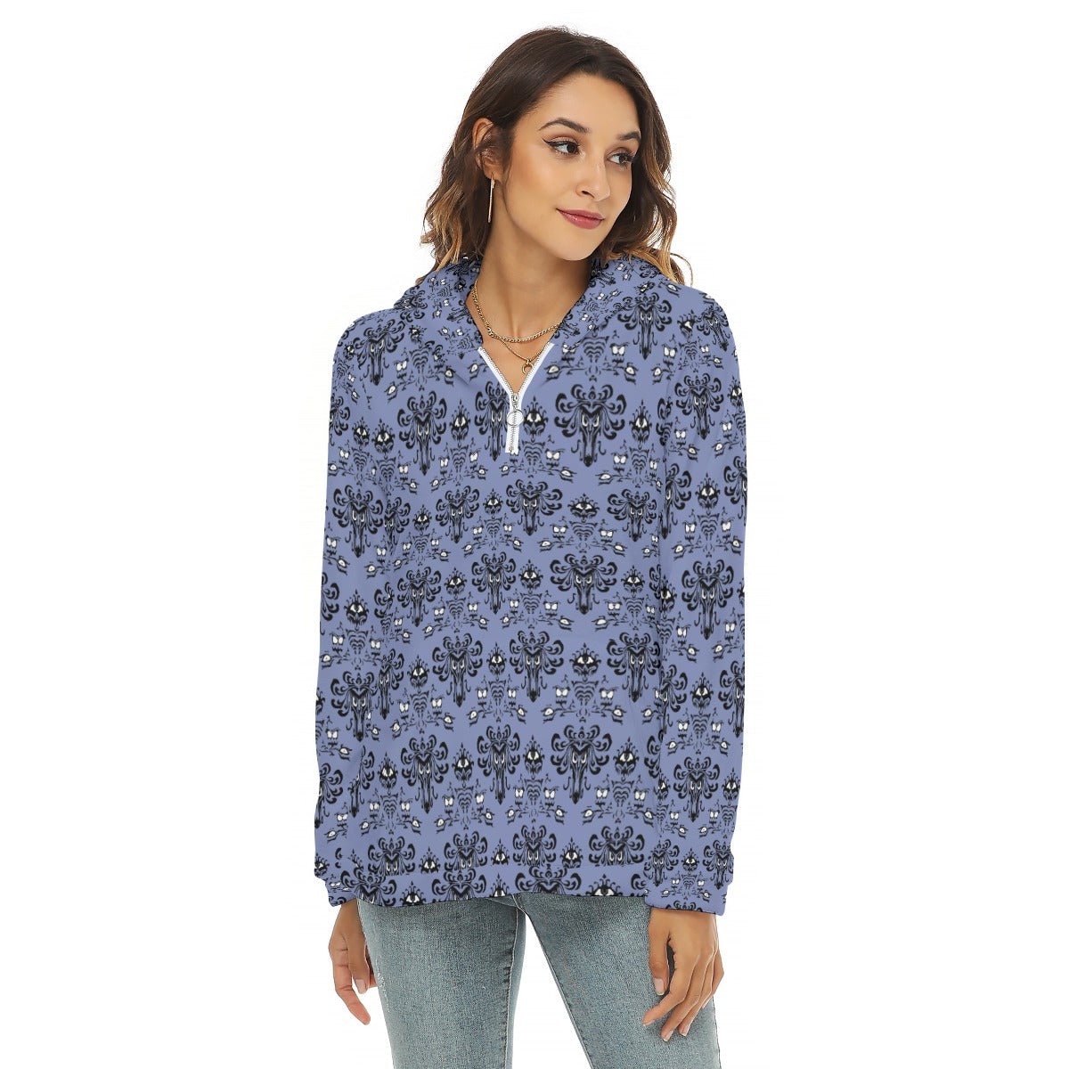 Step into spooky elegance with this iconic Victorian gothic wallpaper-inspired print! Perfect for those who want to make their visit a little more "spirited" - this design captures the essence of vintage haunted mansion aesthetics with intricate damask patterns and mysterious motifs. Whether you're planning a magical vacation or just want to add some ghostly charm to your wardrobe, this all-over seamless print brings that beloved attraction atmosphere wherever you go.