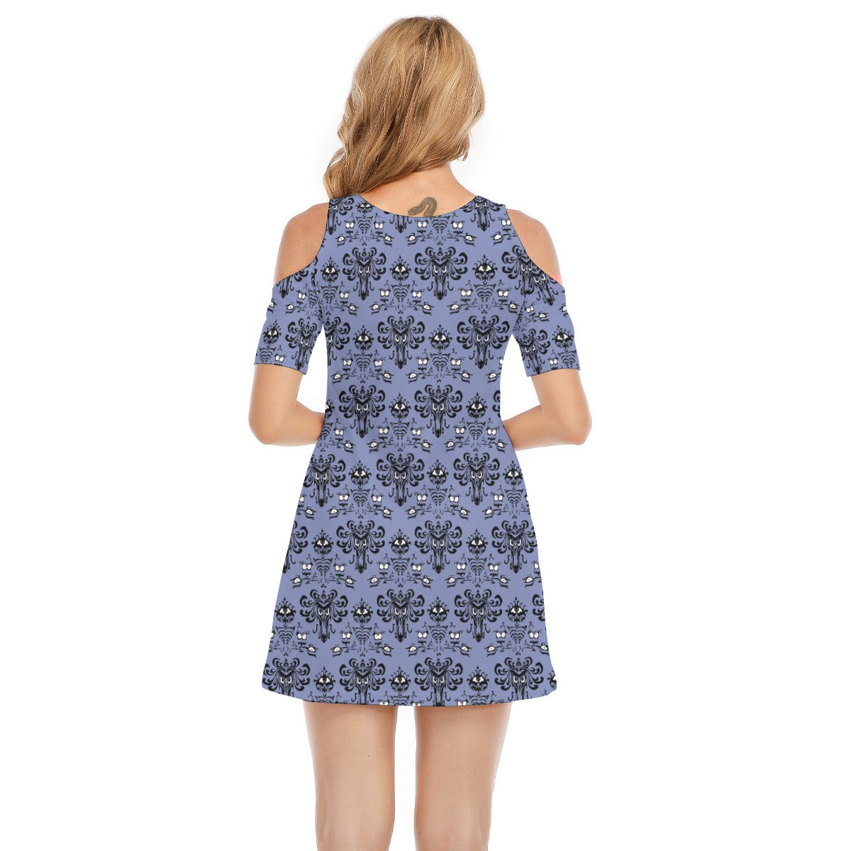 Haunted Mansion Wallpaper - Women's Cold Shoulder Cotton Dress