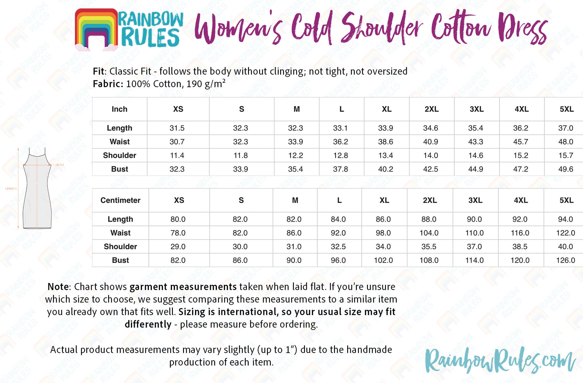 Size Chart - Women's Cold Shoulder Cotton Dress