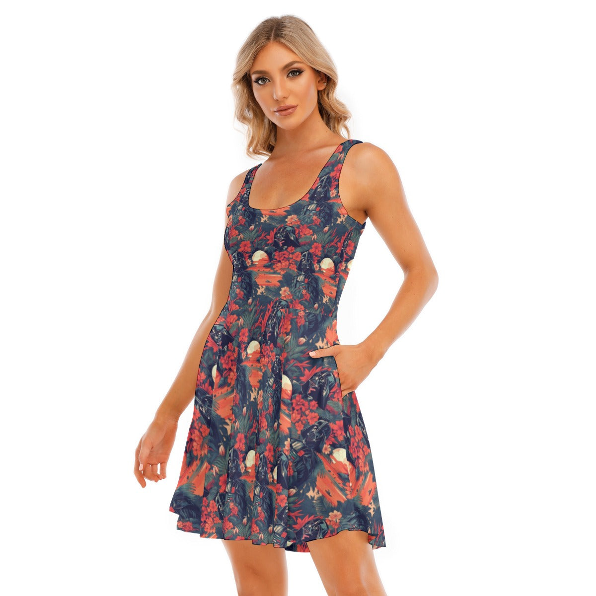 Tropical Dark Side Escape - Women's Sleeveless Pocket Skater Dress