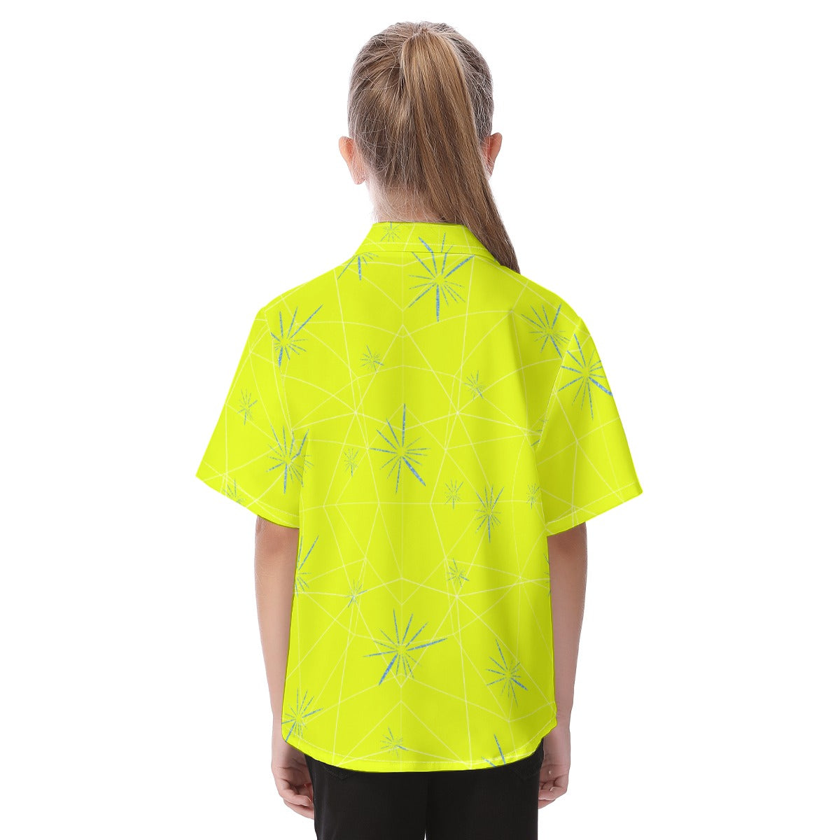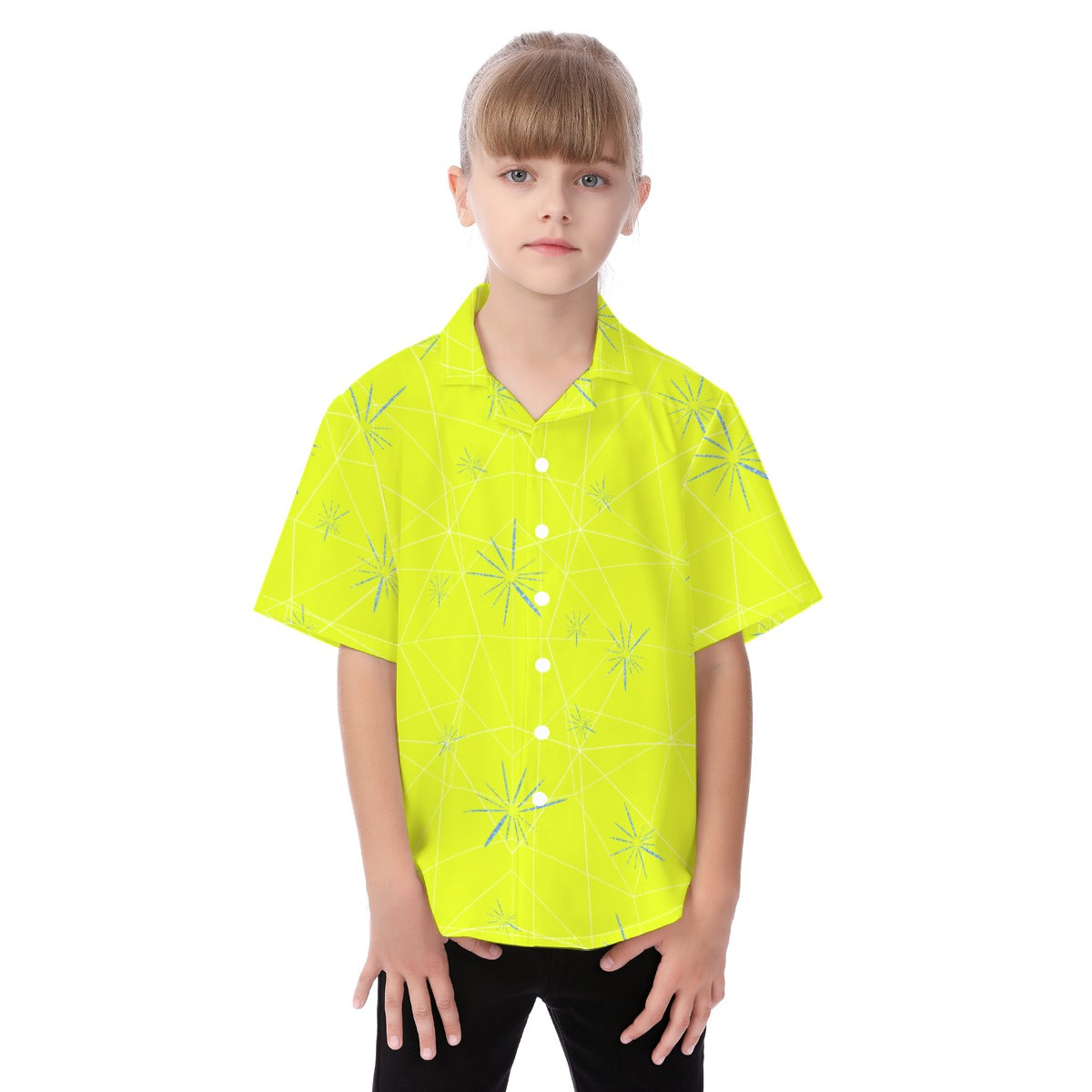 Joyful Blue & Yellow Florals - Kid's Hawaiian Button Up Shirt