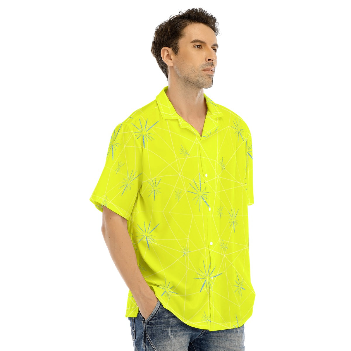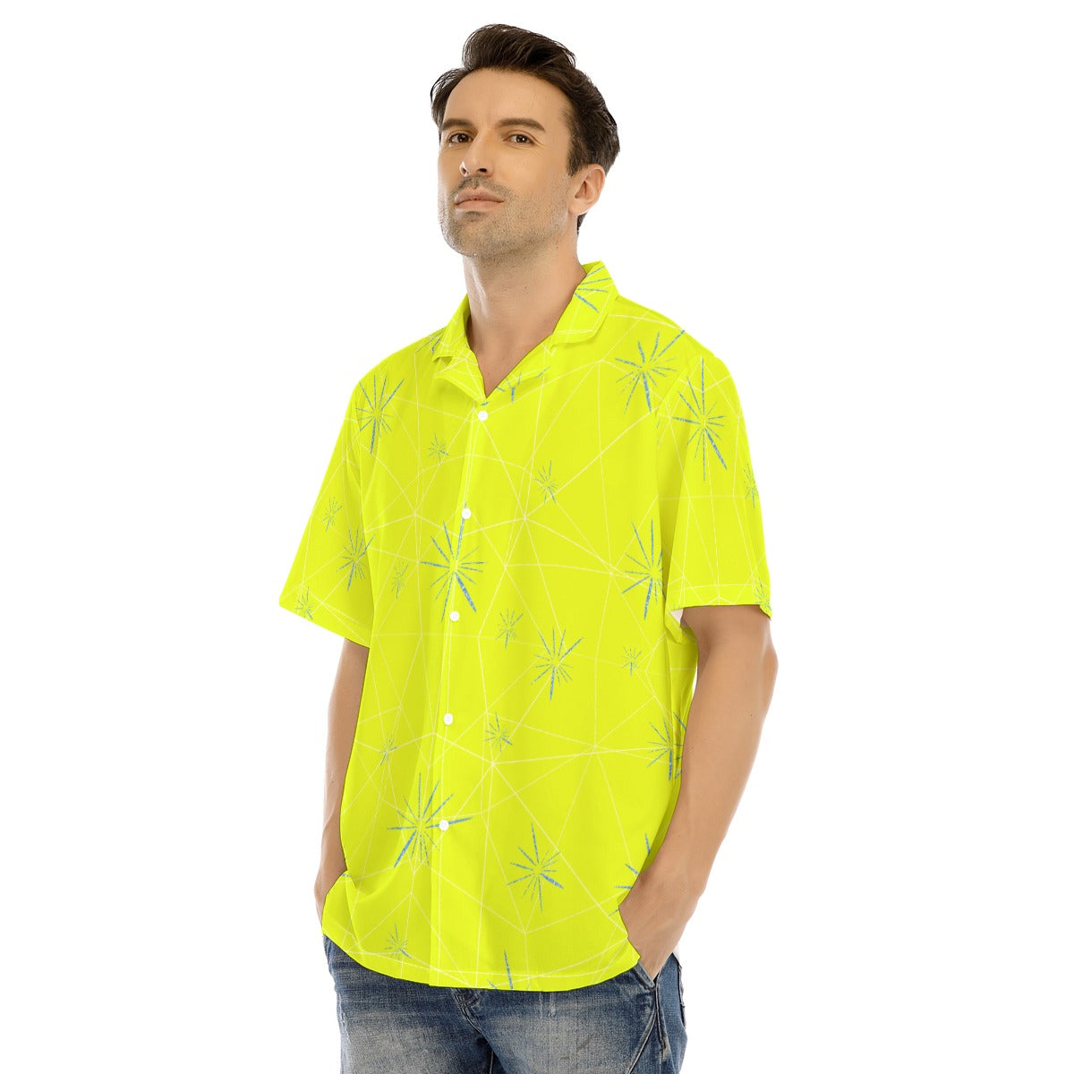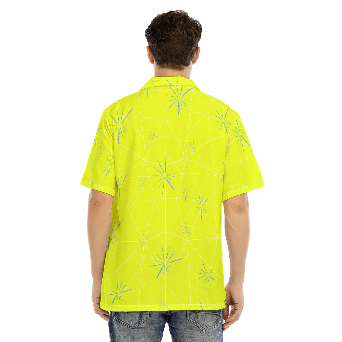 Joyful Blue & Yellow Florals - Men's Hawaiian Button Up Shirt