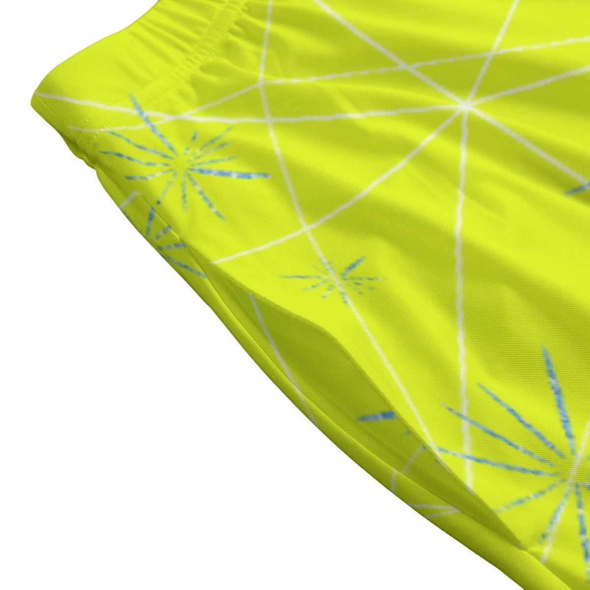 Bring a burst of happiness to your day with this bright design inspired by a certain joyful friend. Featuring sparkling blue flowers dancing on a sunny yellow background with playful white geometric lines, it’s perfect for adding a pop of positivity and a smile to any outfit.