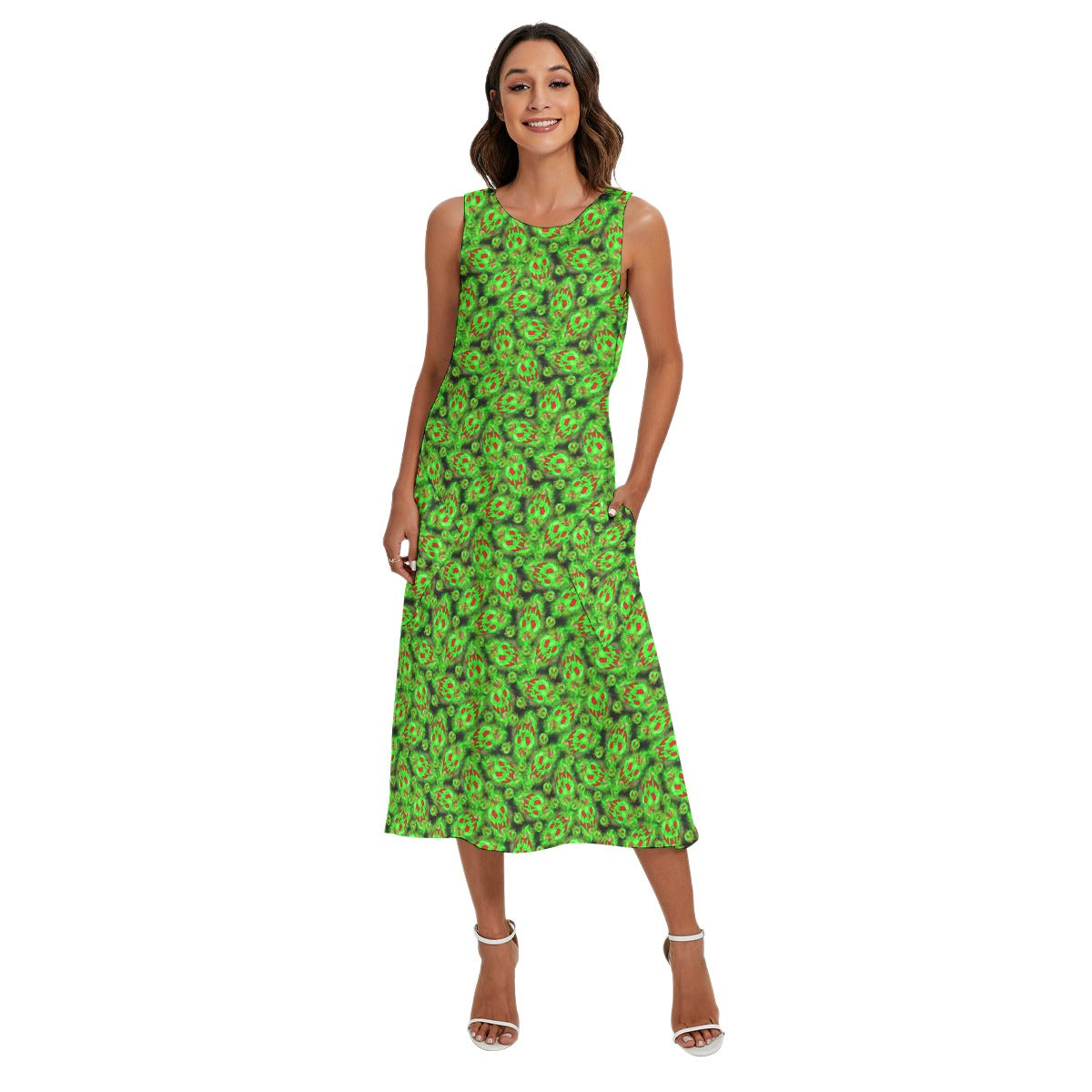Clean lines, soft fabric, and standout style — our Women’s Diagonal Pocket Midi Dress is equal parts comfort and everyday charm. With a sleeveless cut, classic crew neckline, and relaxed A-line shape, it flatters without clinging and moves easily from day to night.
