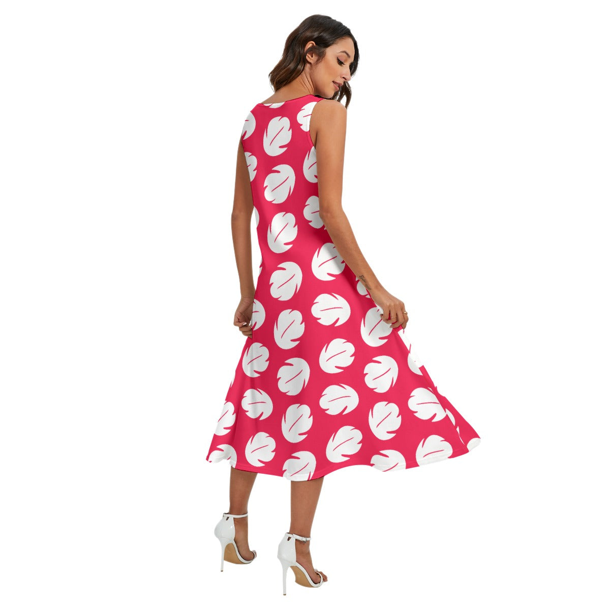 Island Leaf Print - Women’s Diagonal Pocket Midi Dress
