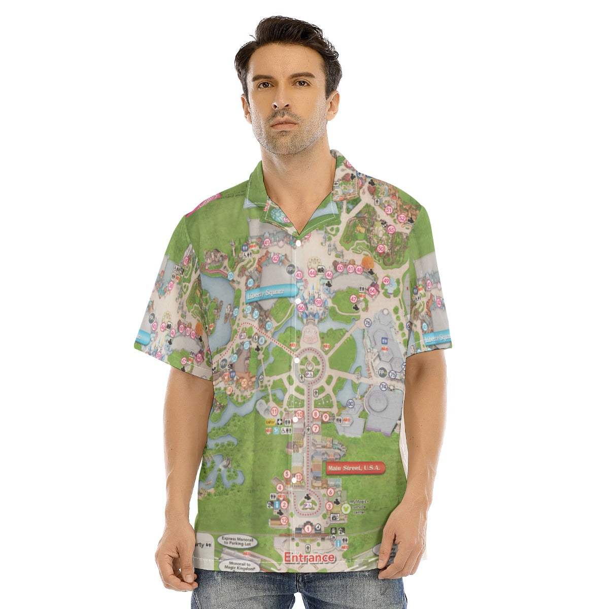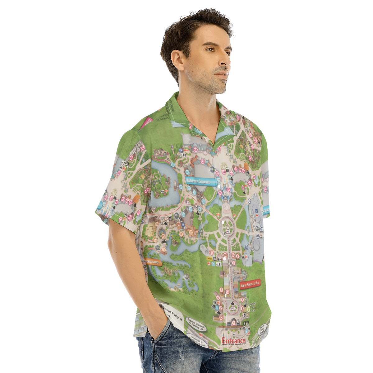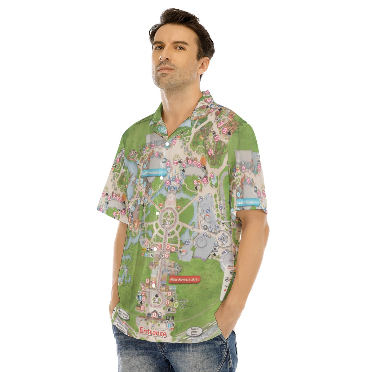 Vibrant Fantasy Park Map - Men's Hawaiian Button Up Shirt