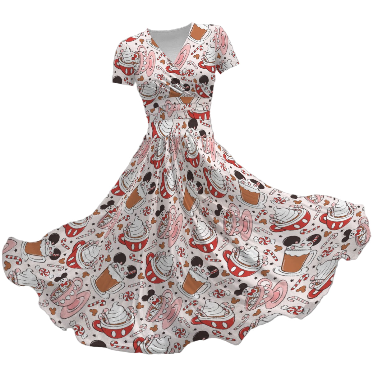 Magic Mouse Hot Chocolate - Women's V-Neck Ruched Midi Dress