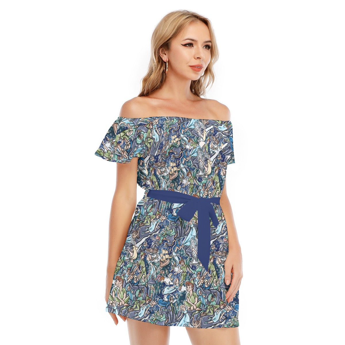 Magical Skybound Adventure - Women's Off-shoulder Ruffle Dress