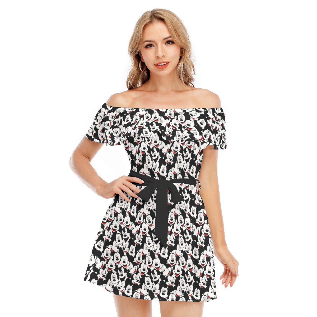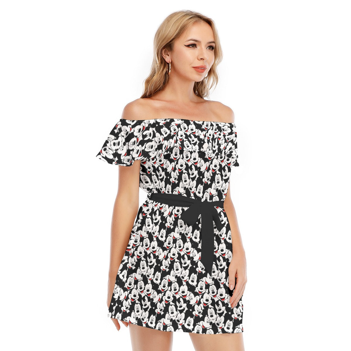 Many Faces of Classic Mouse - Women's Off-shoulder Ruffle Dress