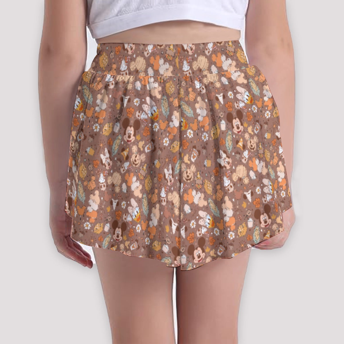 Sweater weather and pumpkin spice come together in this warm-toned print featuring beloved friends surrounded by autumn leaves, cozy treats, and seasonal snacks. Filled with mouse-ear-shaped accents and harvest colors, it’s a festive nod to the magic of crisp fall days and spiced delights. Perfect for those who crave a little extra “pumpkin magic” in their wardrobe!