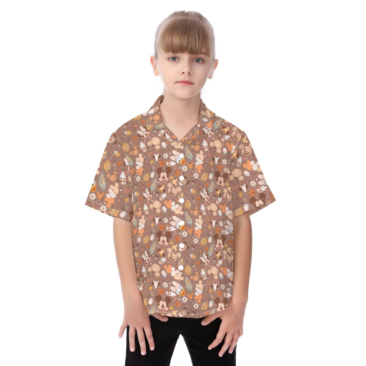 Pumpkin Spice Friends FallFall - Kid's Hawaiian Button Up Shirt