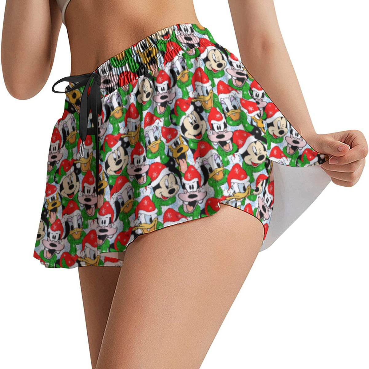 Breezy, flattering, and ready for anything — our Women’s Flowy Pocket Shorts are your go-to for theme park strolls, travel days, or just staying cute and comfy on the move. The flowy outer layer gives a skirt-like look with full freedom underneath thanks to the built-in biker-style shorts.