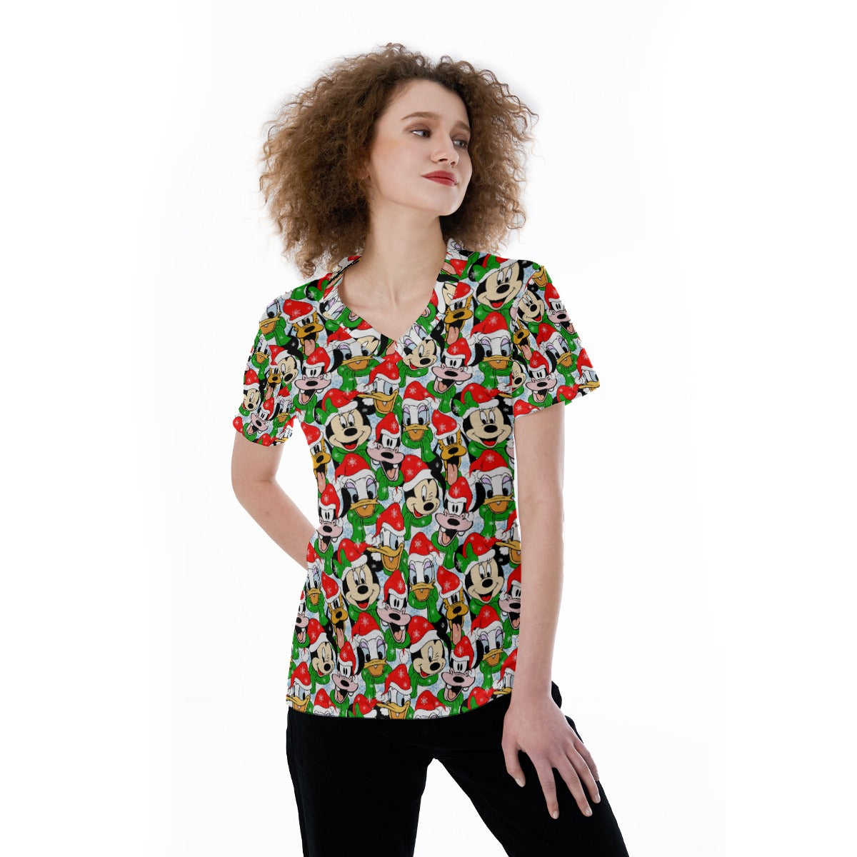Mouse Friends in Santa HatsHats - Women's Short Sleeve V-Neck T-Shirt