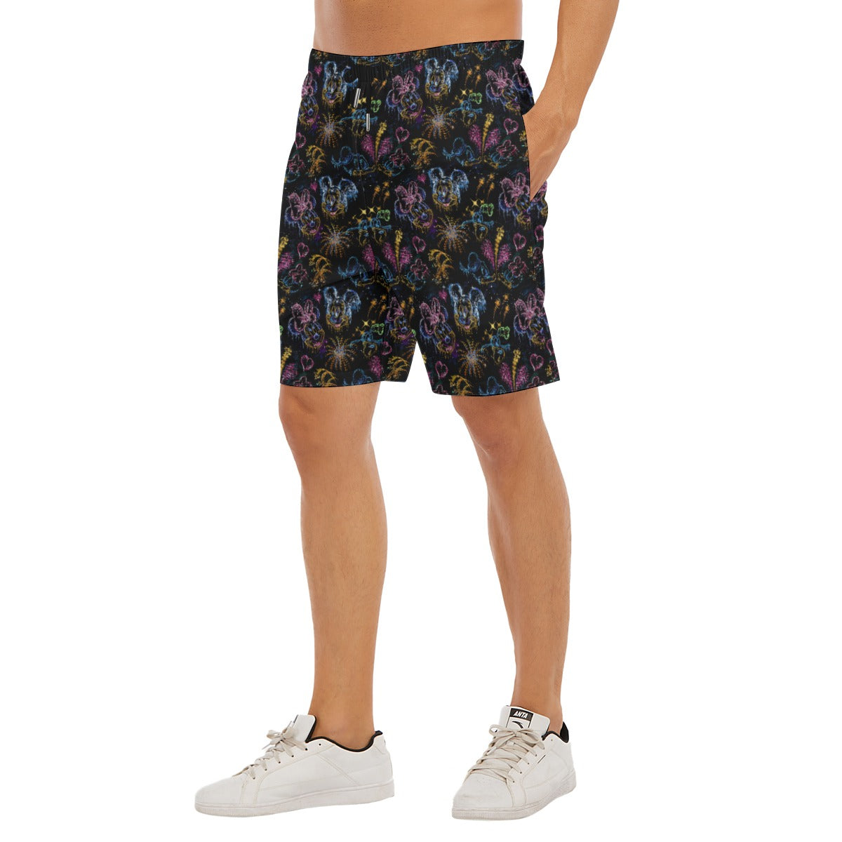 Light up the night with this dazzling design featuring glittering silhouettes of beloved mouse friends surrounded by neon-style fireworks bursting in pink, blue, gold, and orange. Celebrating friendship, sparkle, and unforgettable theme park memories, this print shines like a grand finale.