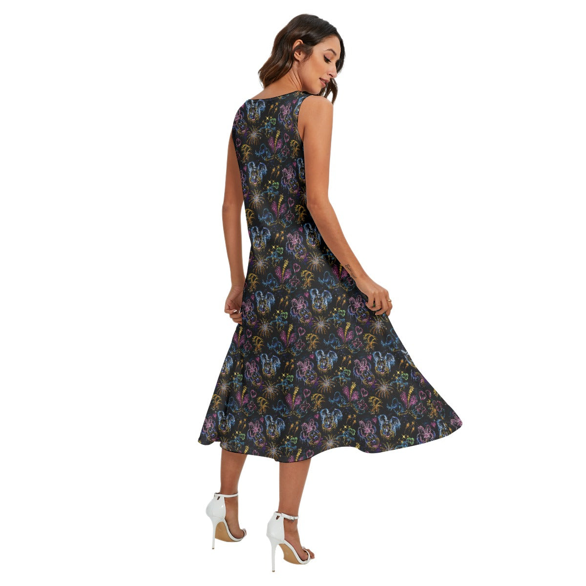 Mouse Friends’ Love in the Sky - Women’s Diagonal Pocket Midi Dress