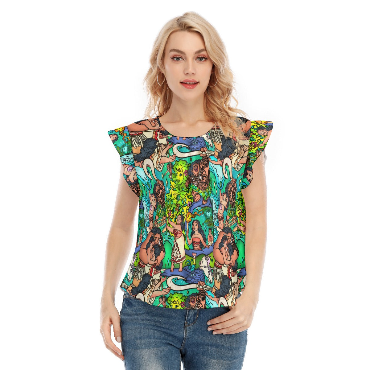 Ocean Voyager Storybook Scenes - Women’s Flutter Sleeve Top