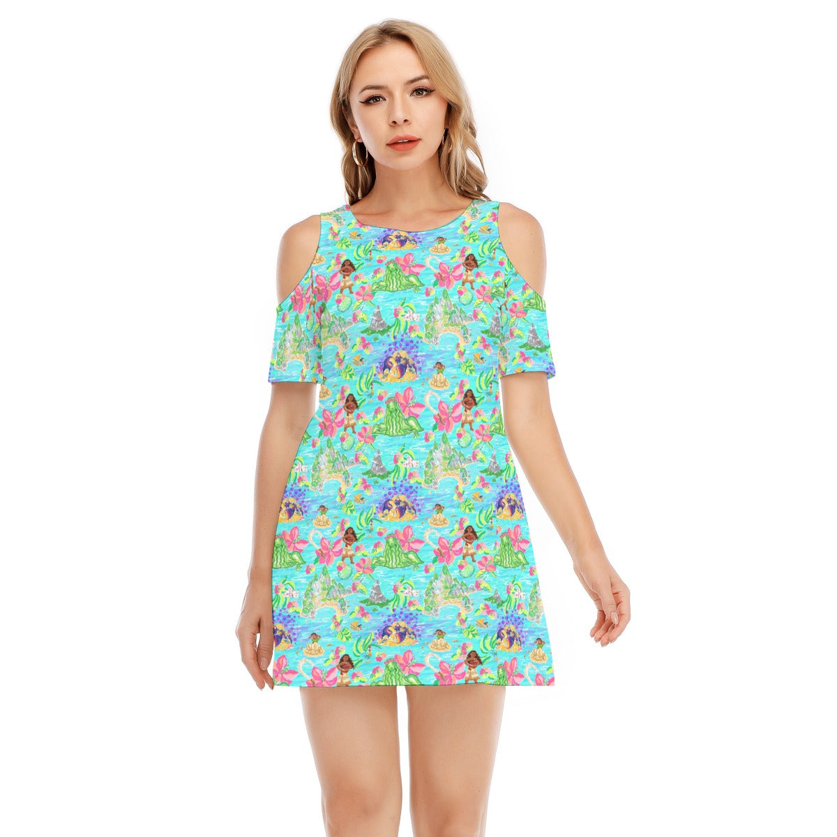 Tropical Island Paradise - Women's Cold Shoulder Cotton Dress