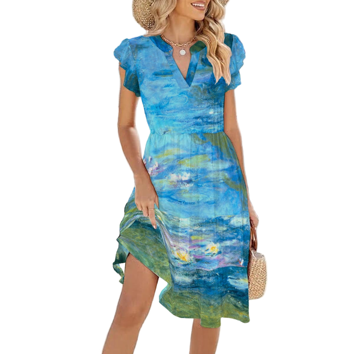 Monet Water Lillies - Women's Tiered Pocket Midi Dress