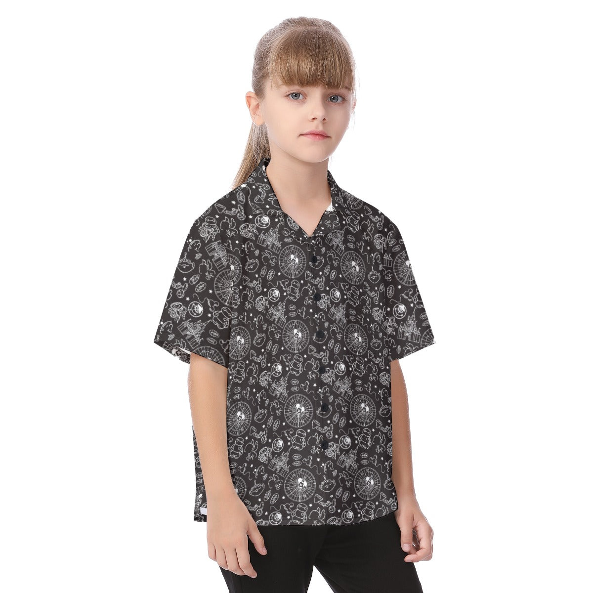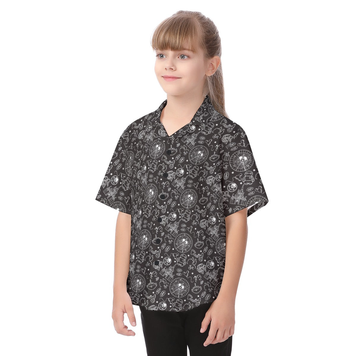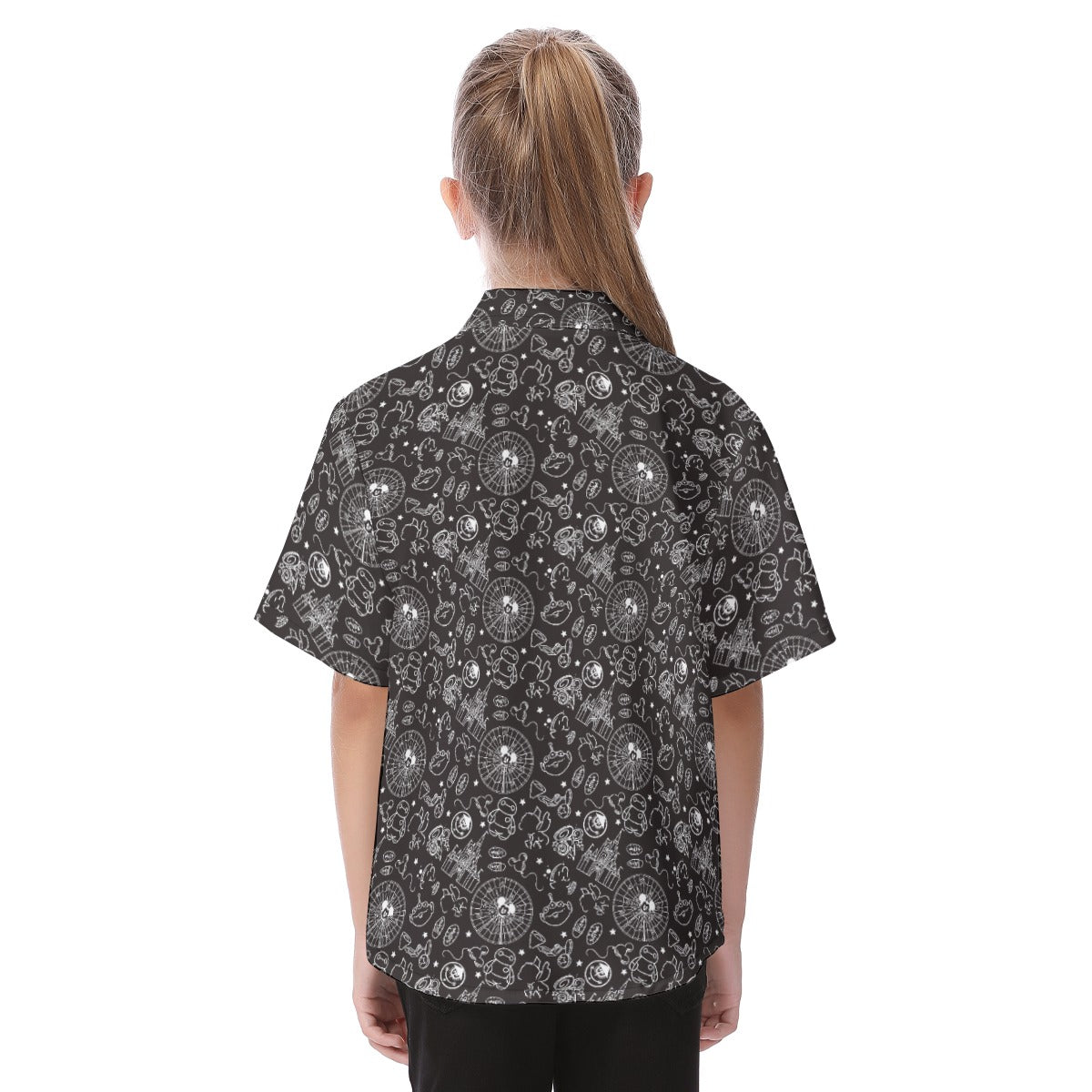 Monochrome Theme Park Icons - Kid's Hawaiian Button Up Shirt