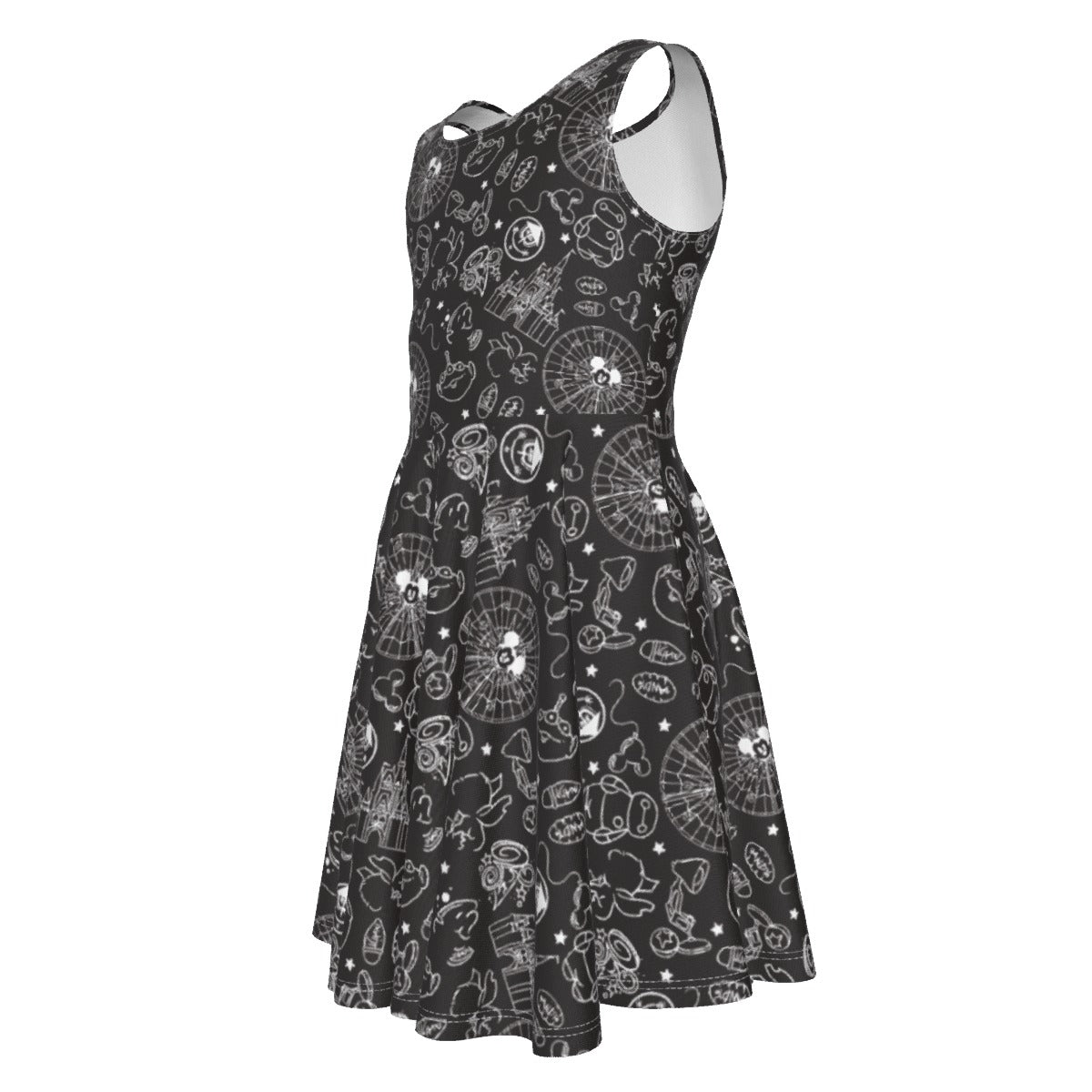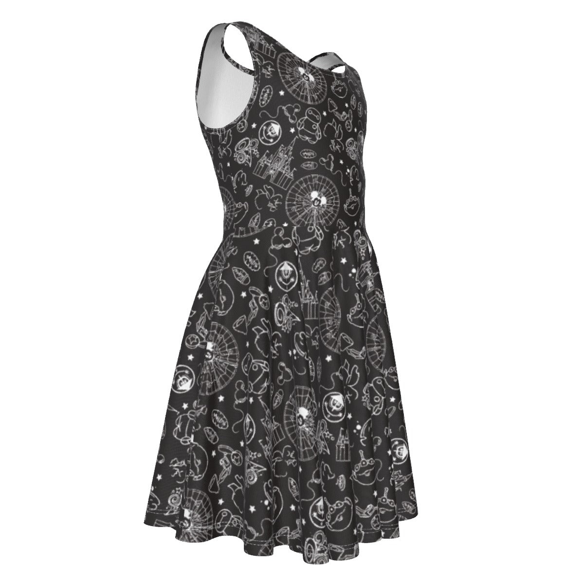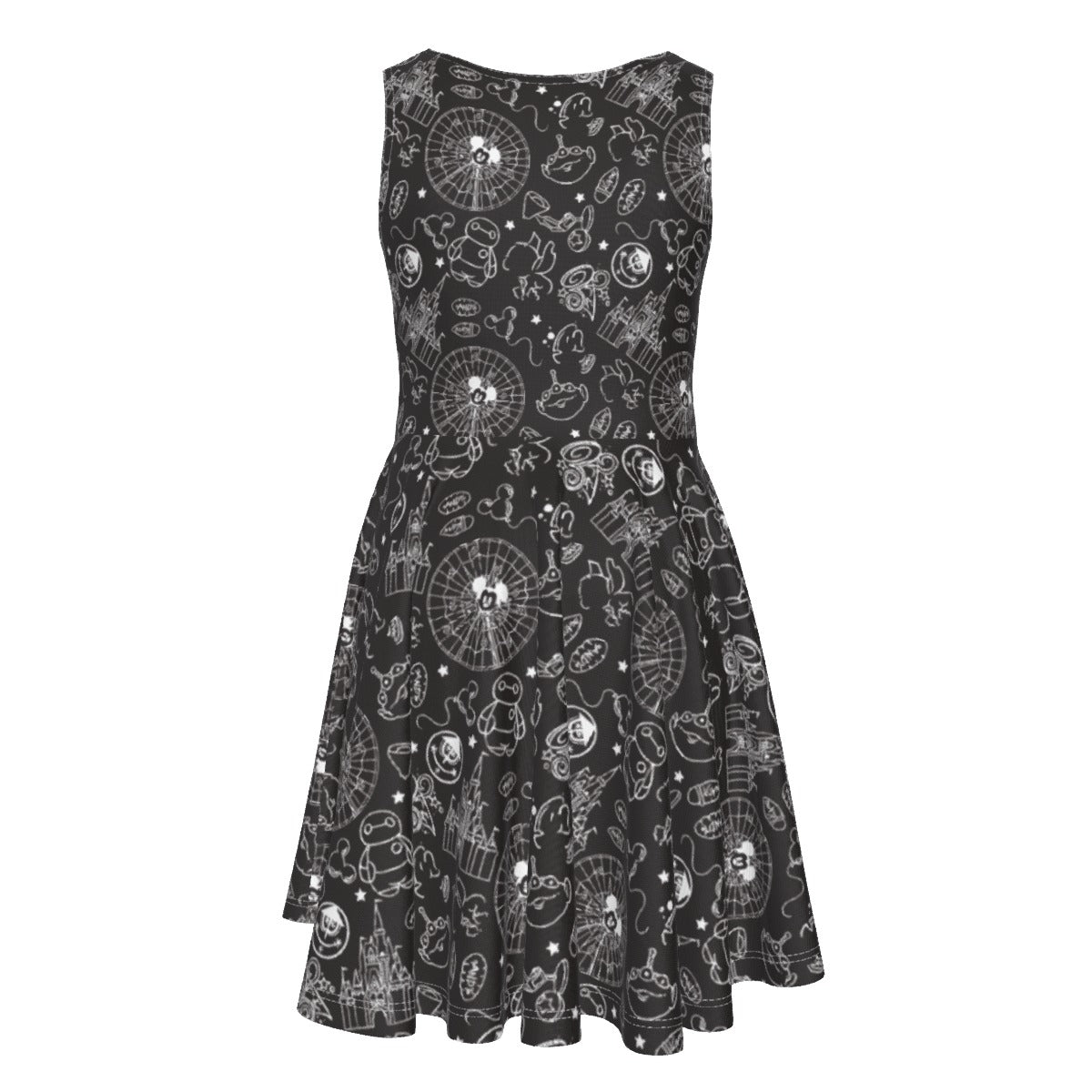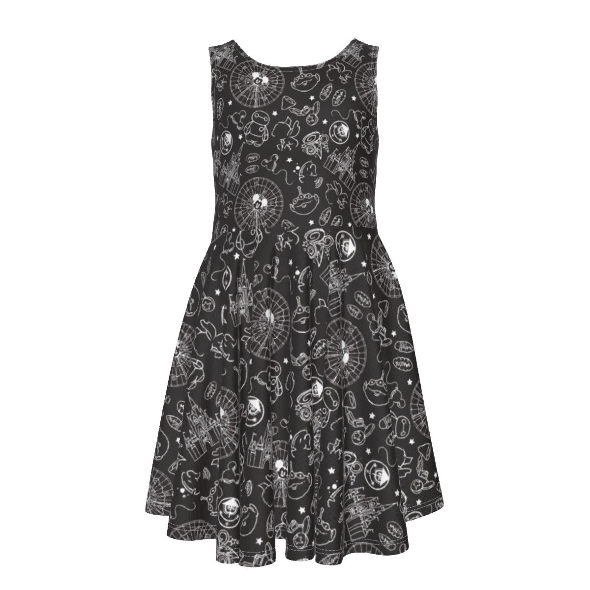 Monochrome Theme Park Icons - Kid's Sleeveless Skater Dress