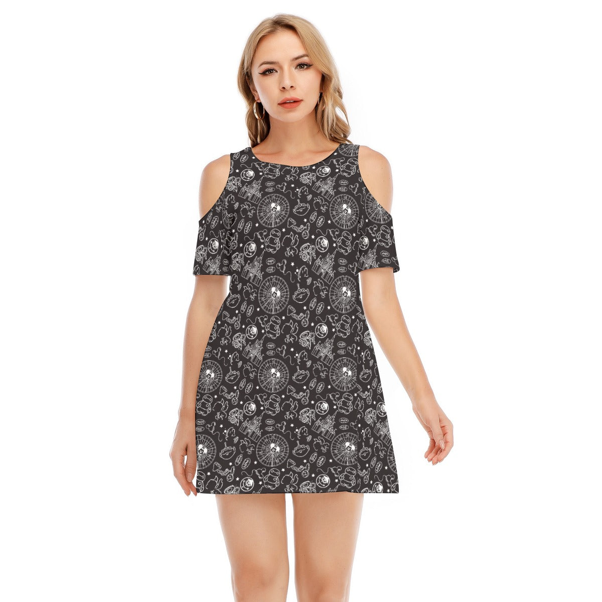 Monochrome Theme Park Icons - Women's Cold Shoulder Cotton Dress