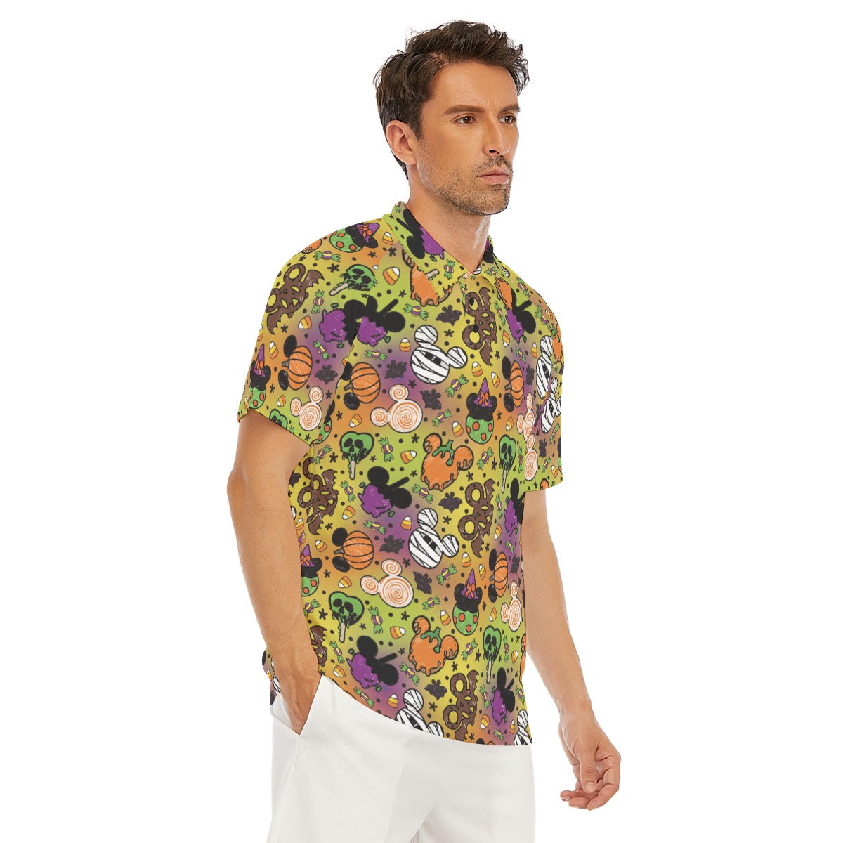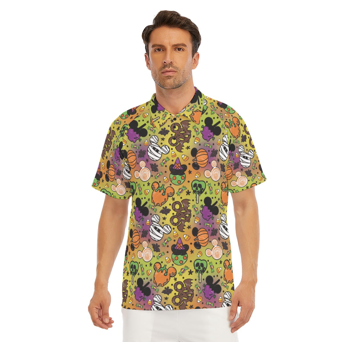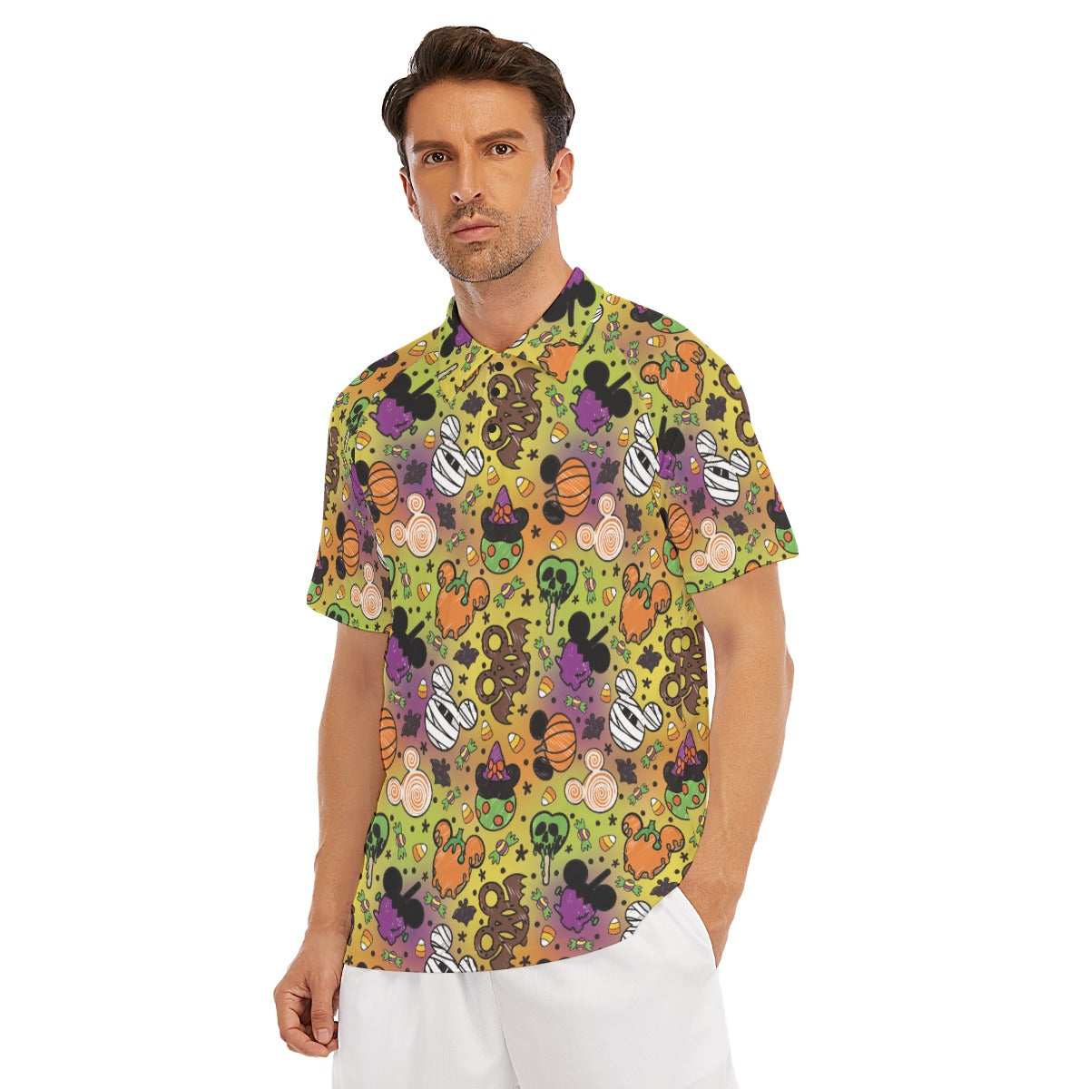 Sink your fangs into this frightfully fun print filled with mouse-ear-shaped Halloween snacks. From gooey green poison apples and bat-wing pretzels to mummy marshmallows and candy corn galore, it’s a trick-and-treat lover’s dream. Every bite looks deliciously wicked—no magic required.