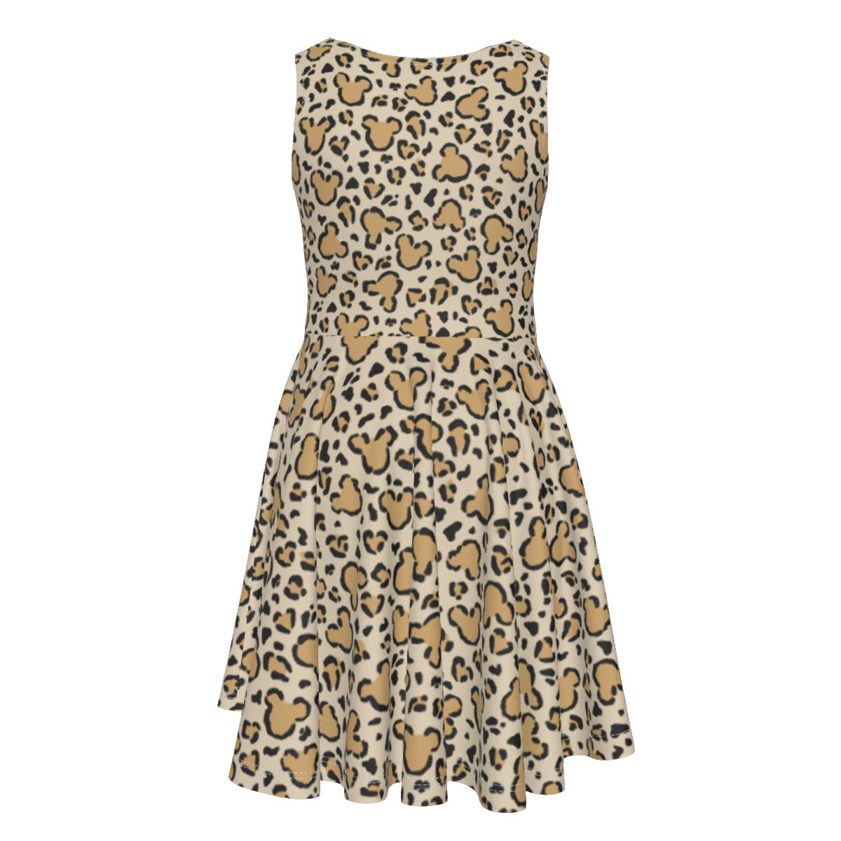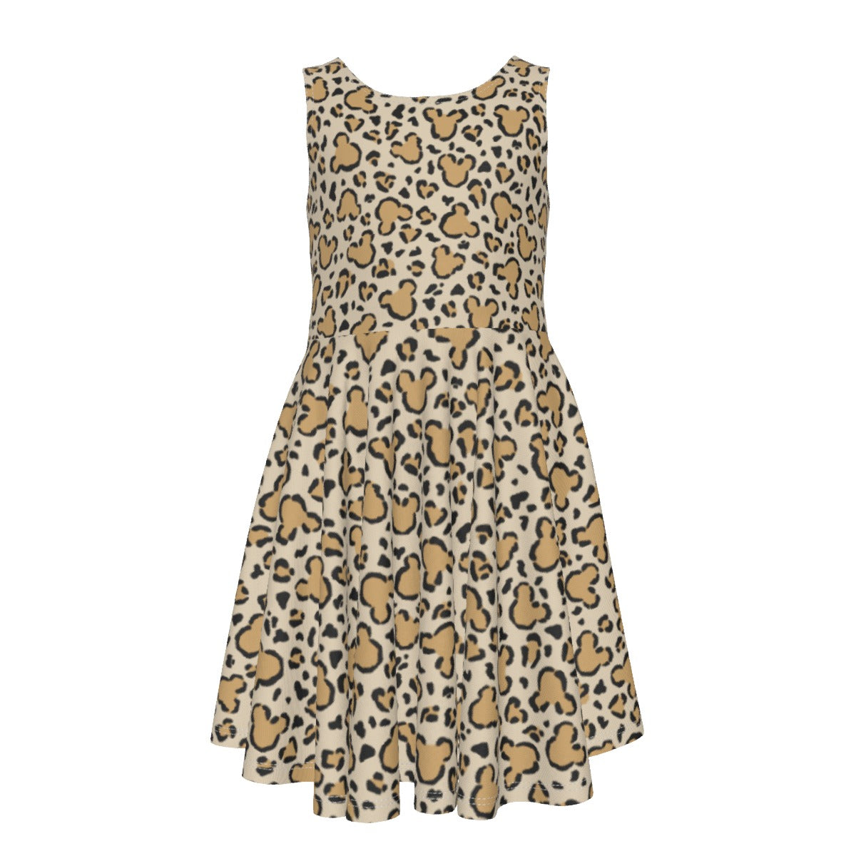 Mouse Ears Animal Print - Kid's Sleeveless Skater Dress