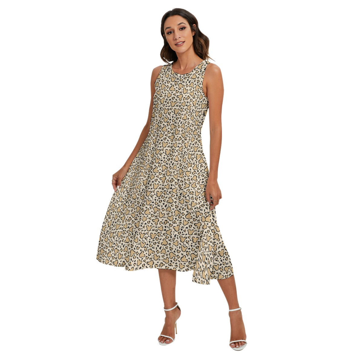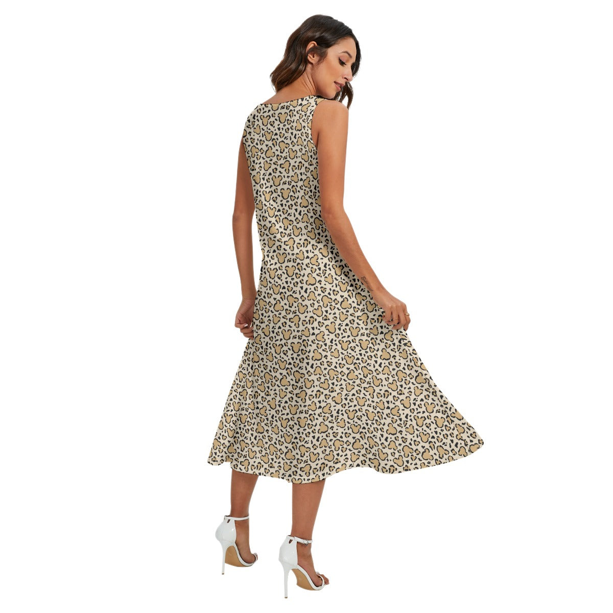 Mouse Ears Animal Print - Women’s Diagonal Pocket Midi Dress