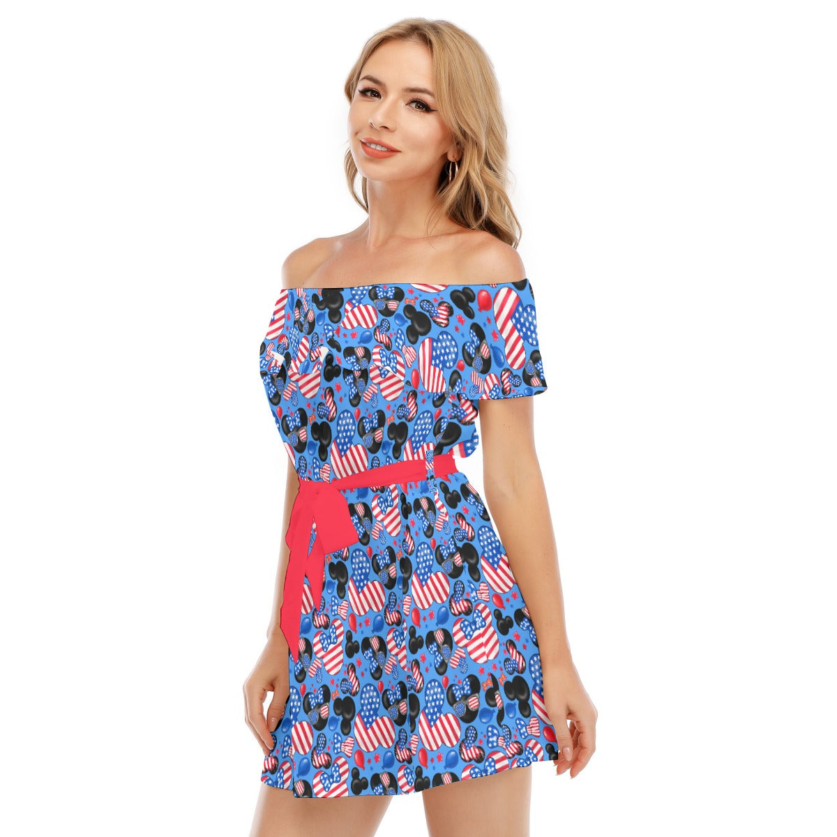 Mouse Fourth of July Celebration - Women's Off-shoulder Ruffle Dress