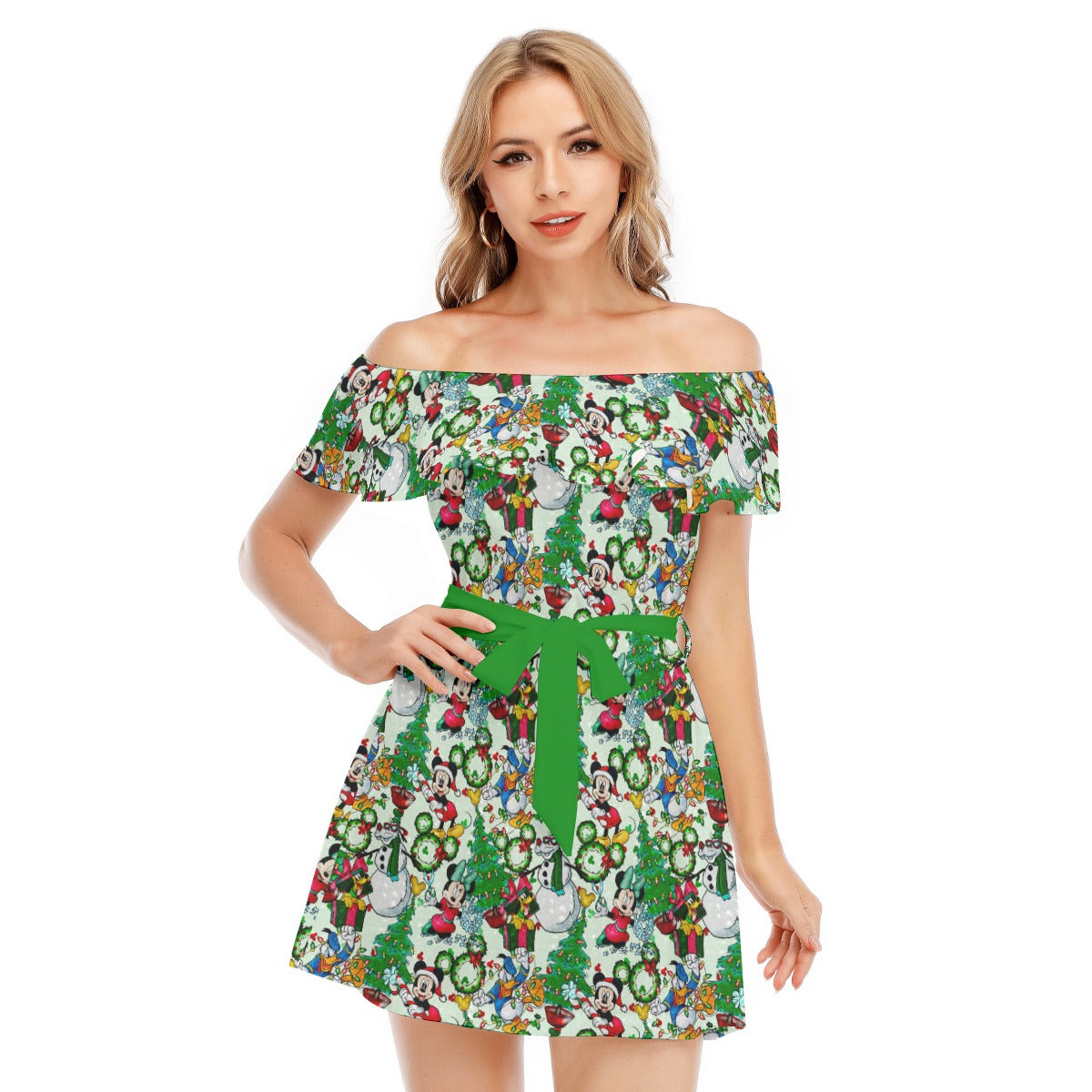 Mouse Friends Christmas Decorations - Women's Off-shoulder Ruffle Dress