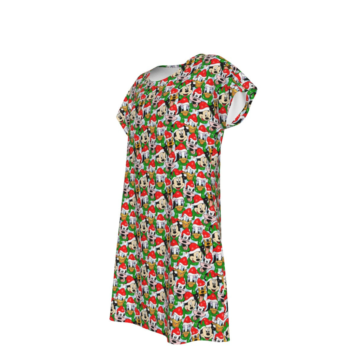 Mouse Friends in Santa Hats - Women's T-Shirt Dress