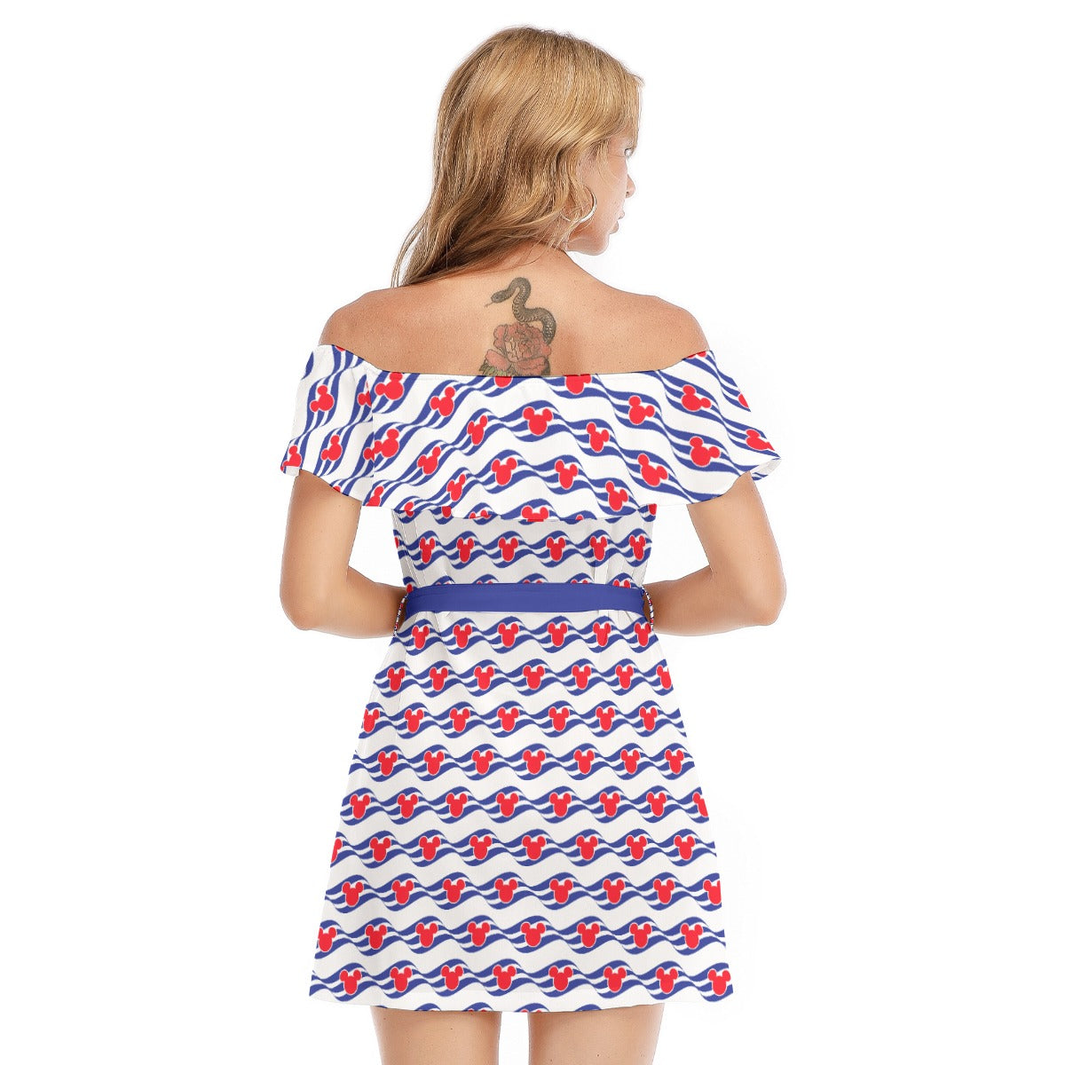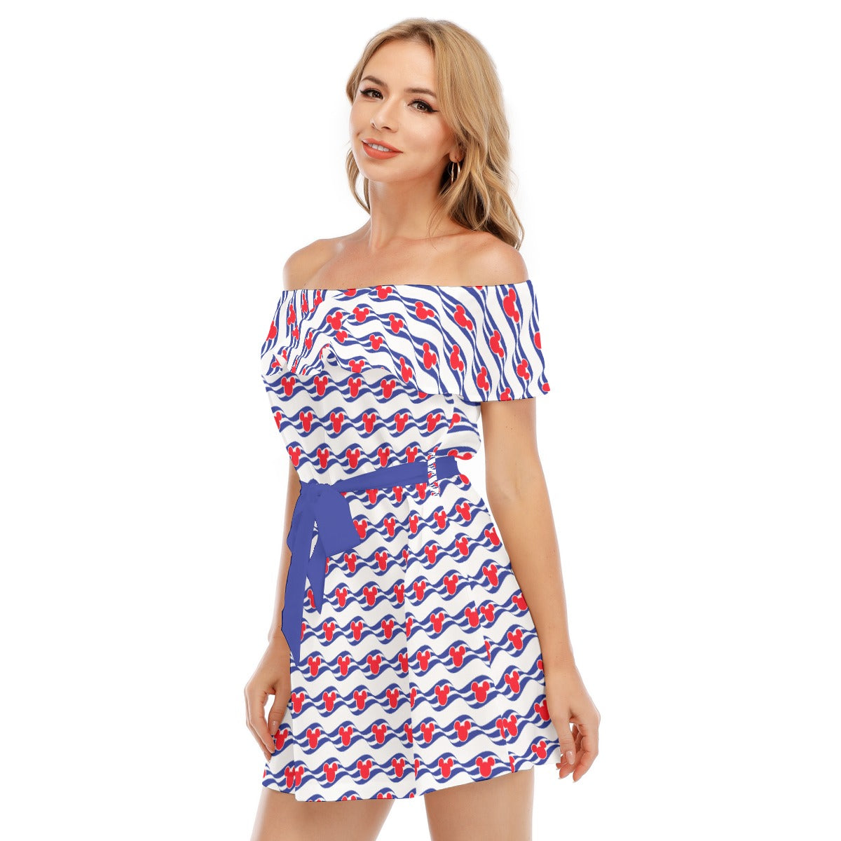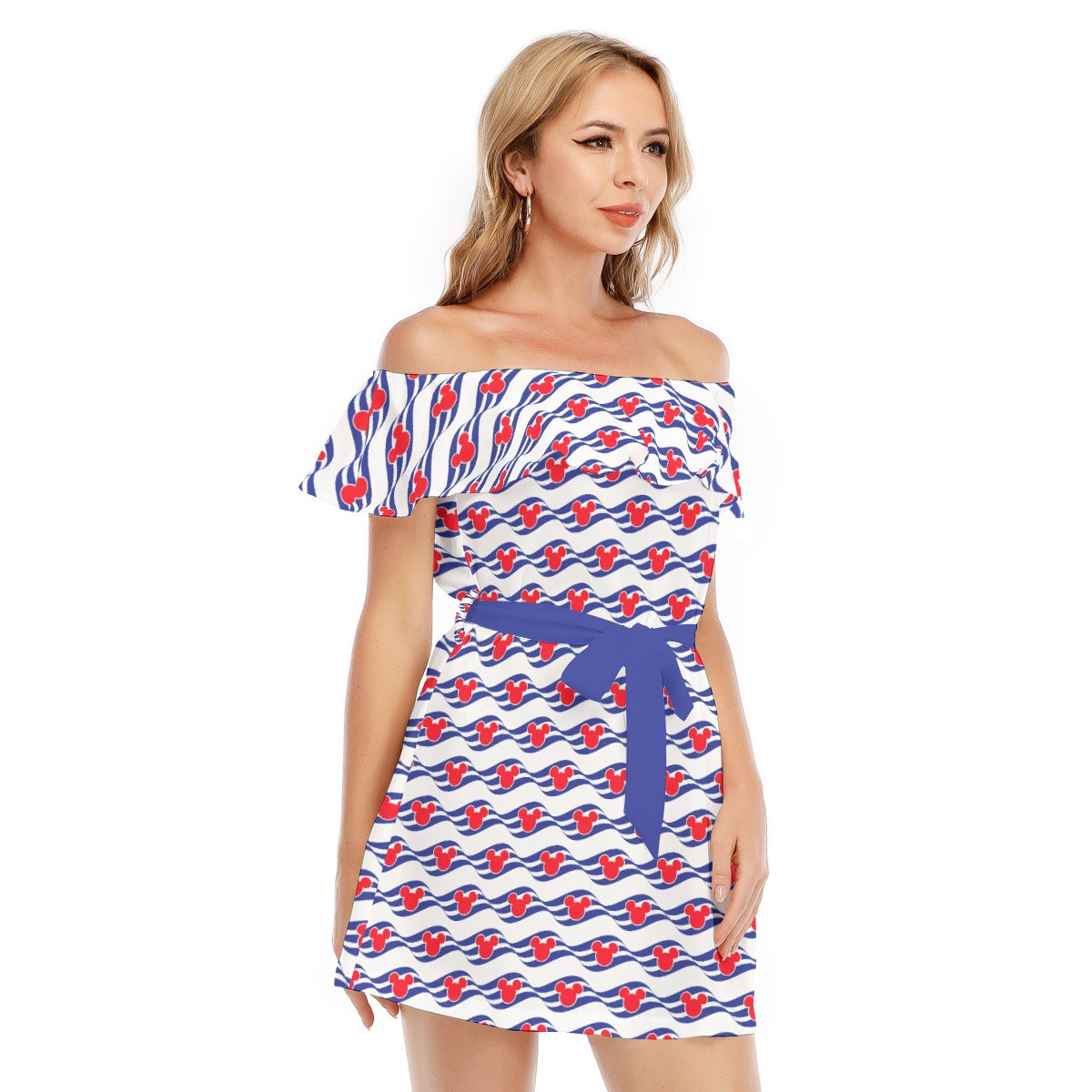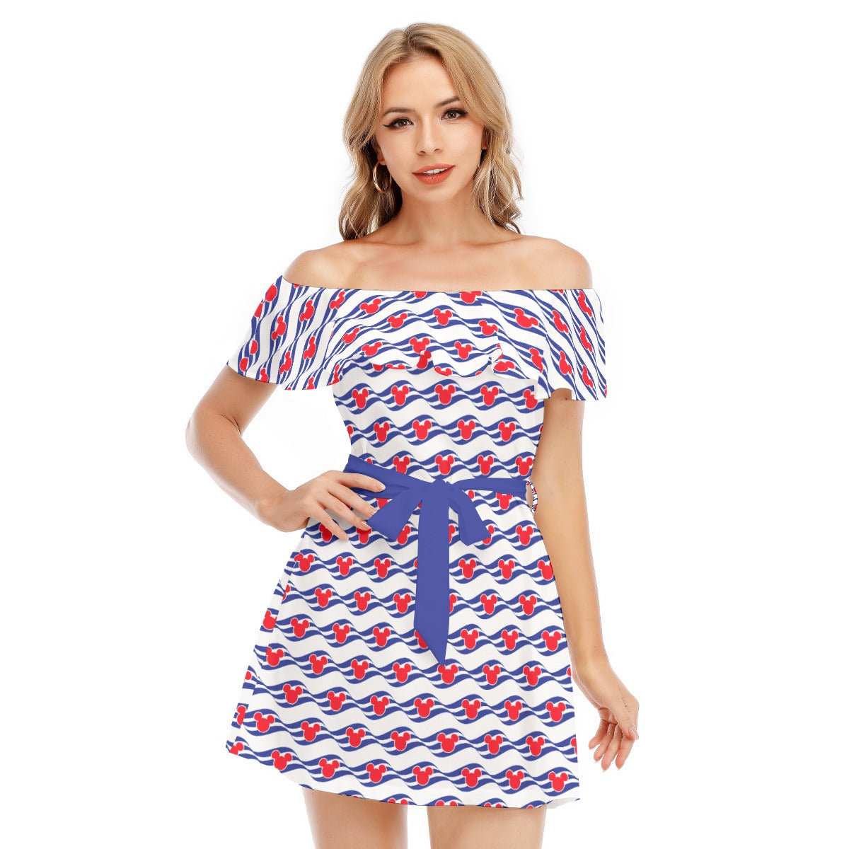 Nautical Cruise Logo Print - Women's Off-shoulder Ruffle Dress