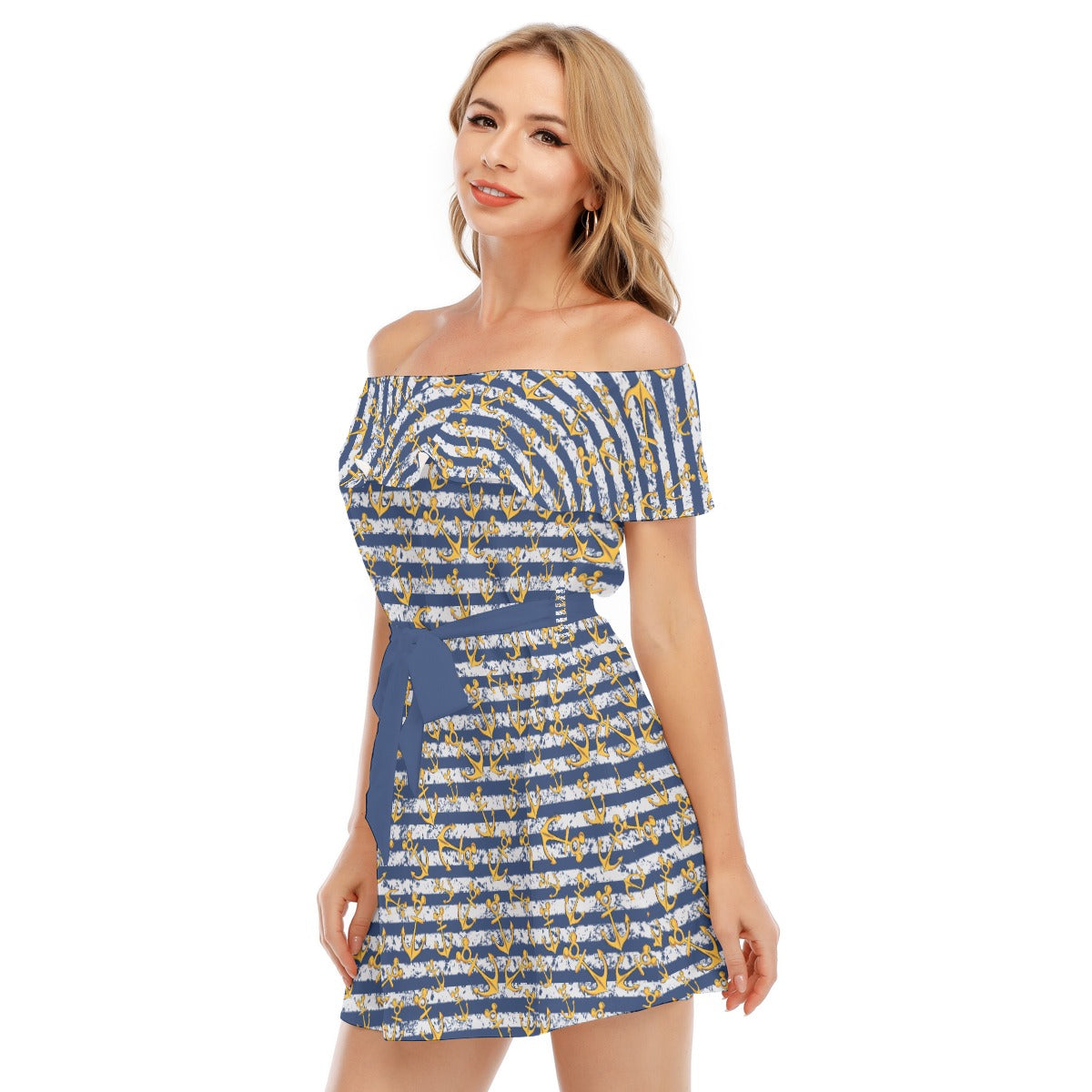 Nautical Mouse Ear Anchors - Women's Off-shoulder Ruffle Dress