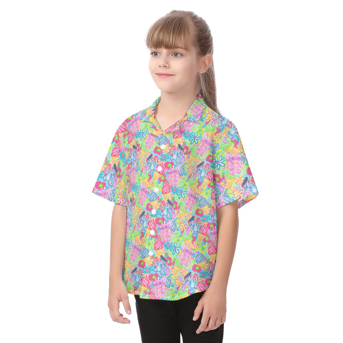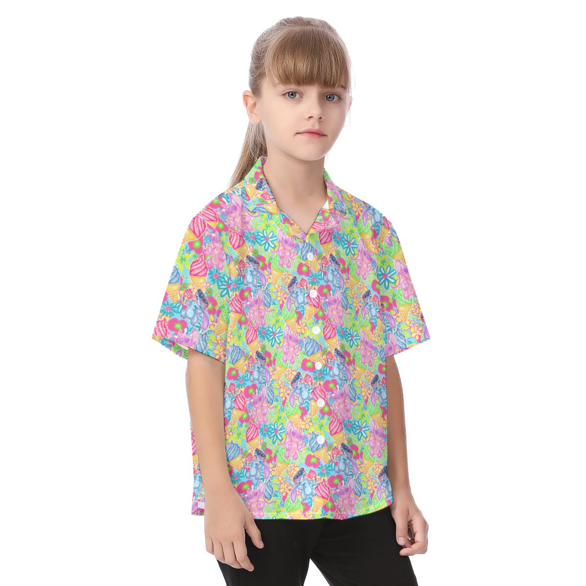 Neon Floral Summer Vibes - Kid's Hawaiian Button Up Shirt