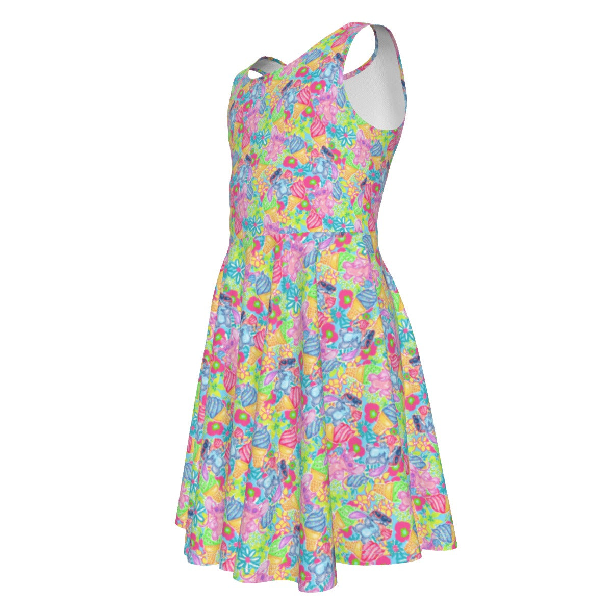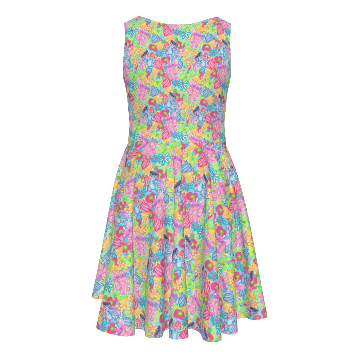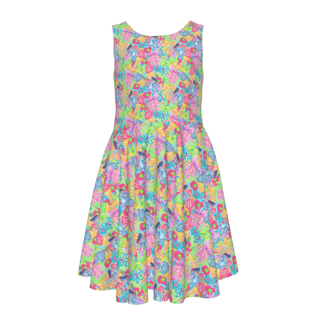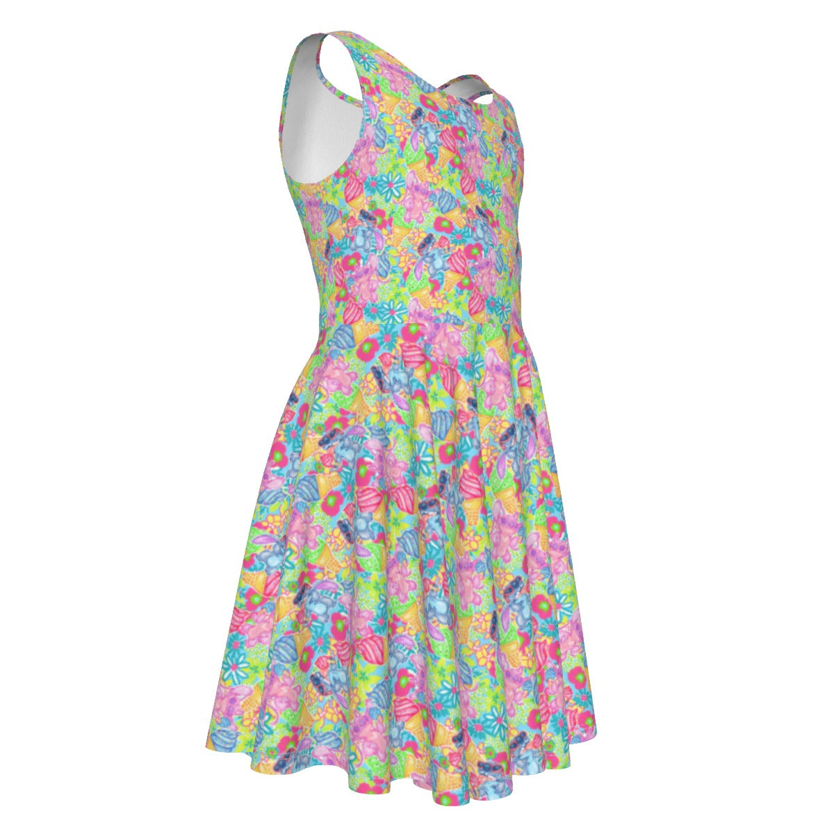 Neon Floral Summer Vibes - Kid's Sleeveless Skater Dress