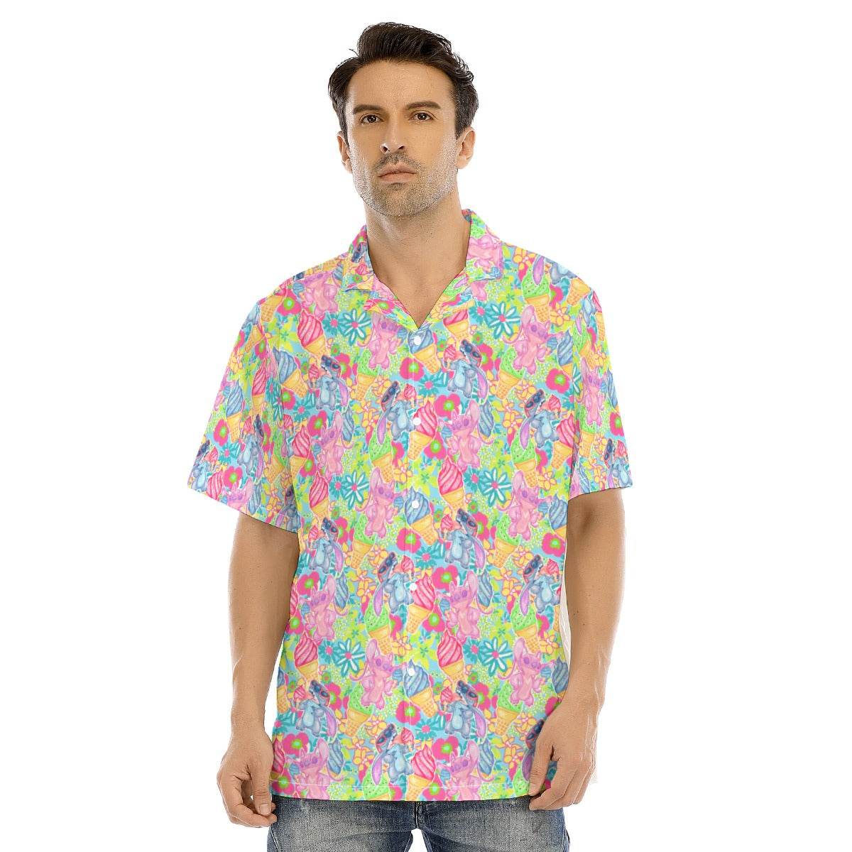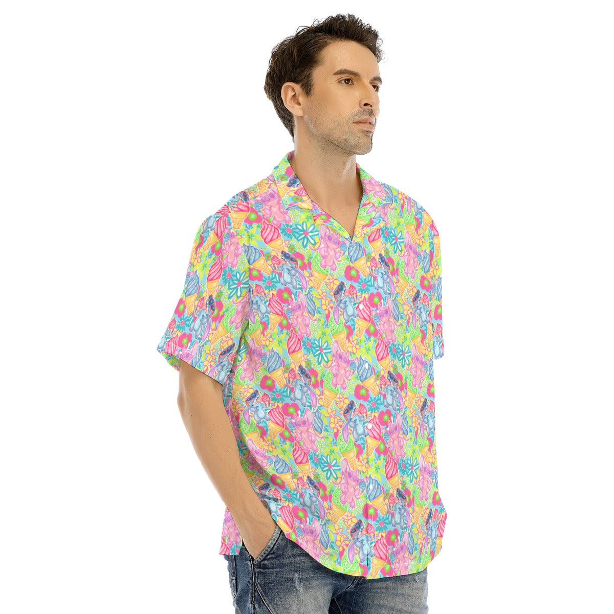 Neon Floral Summer Vibes - Men's Hawaiian Button Up Shirt