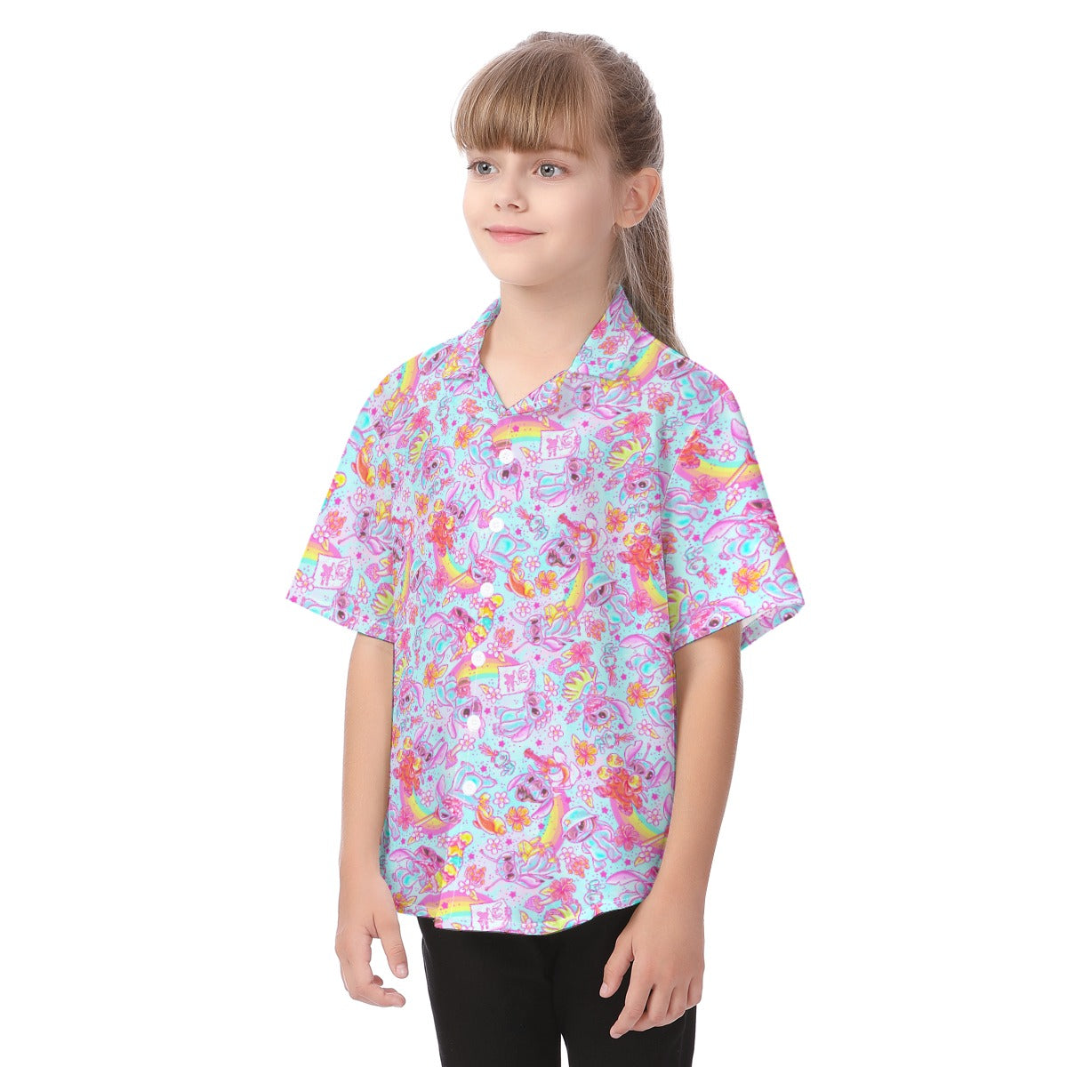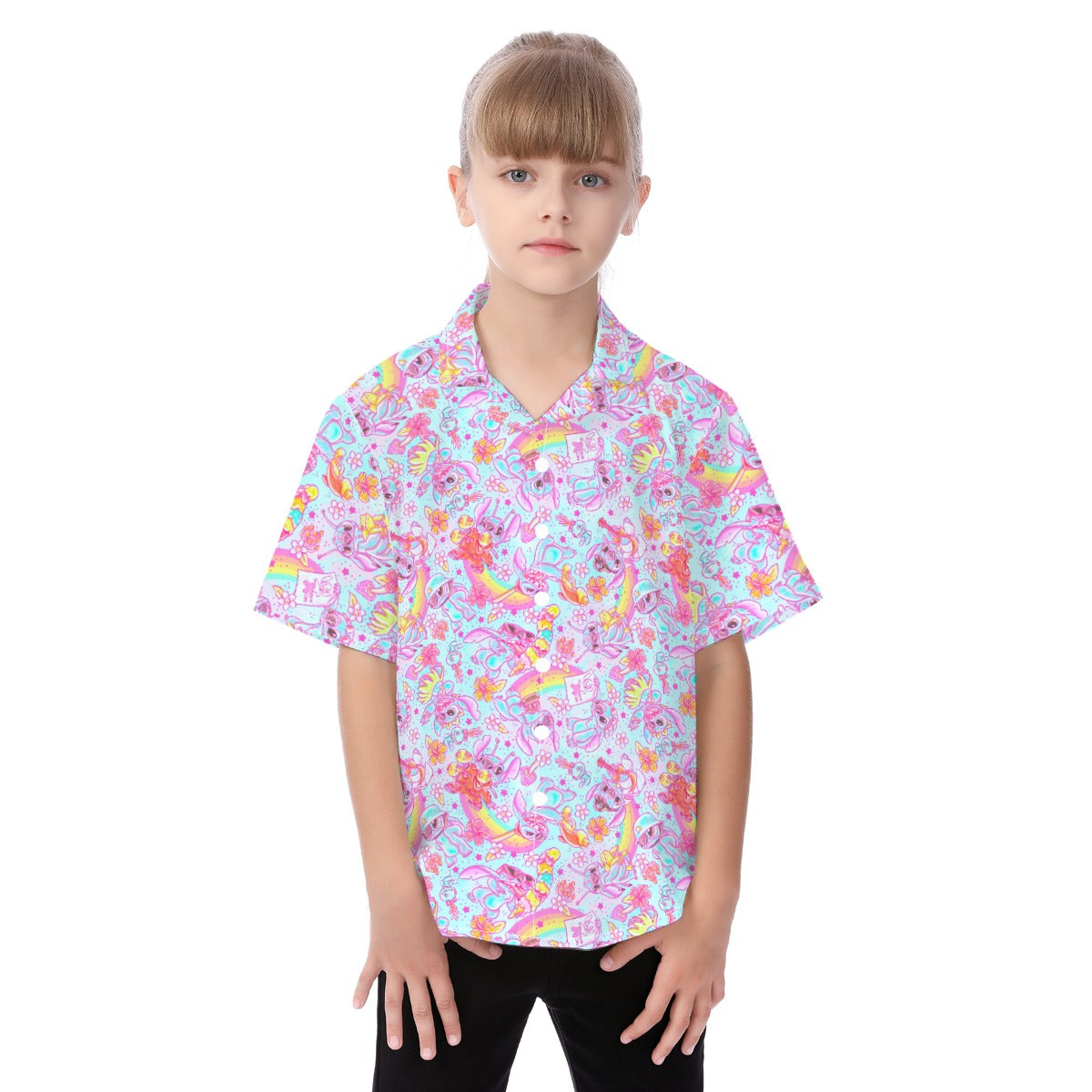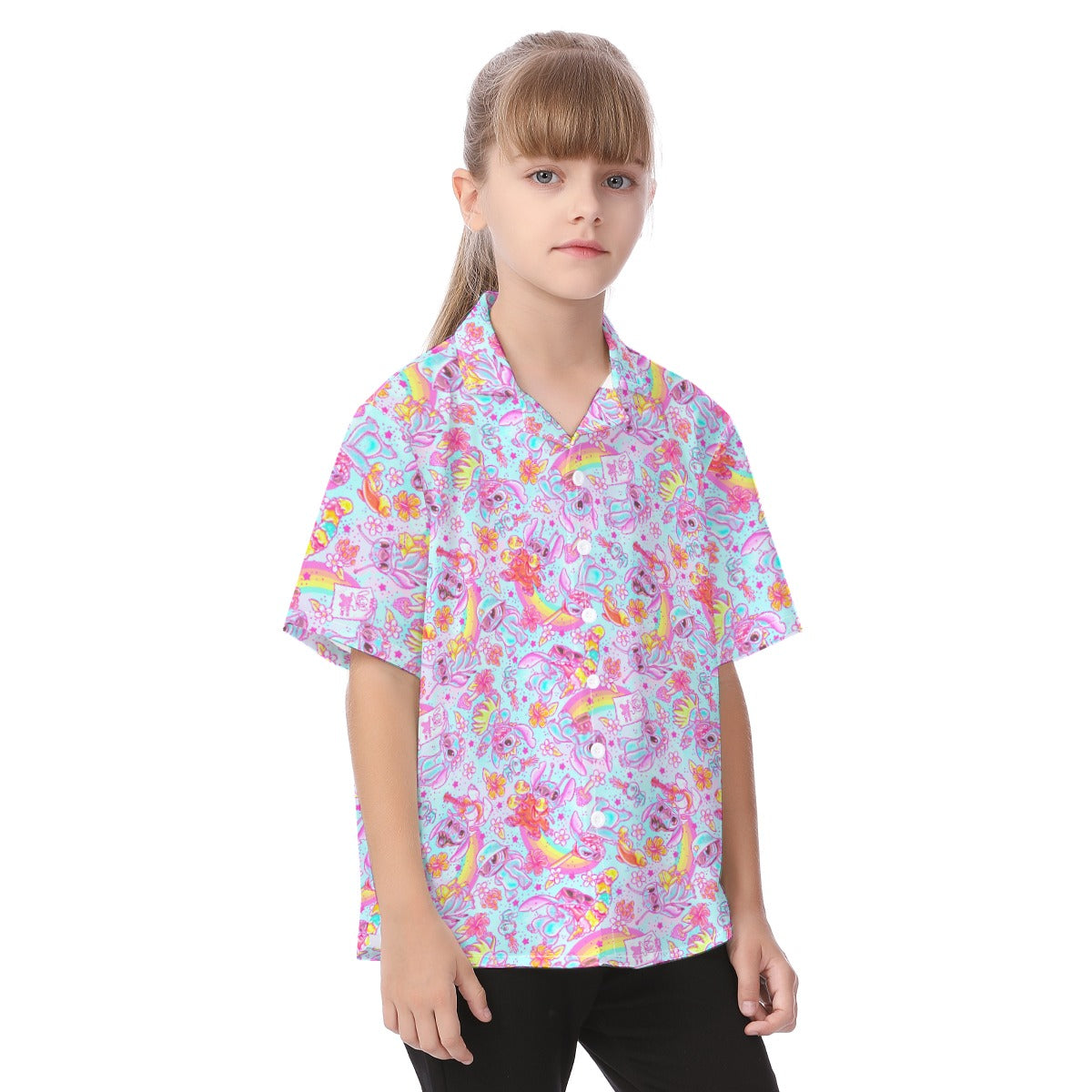 Neon Rainbow Mischief - Kid's Hawaiian Button Up Shirt