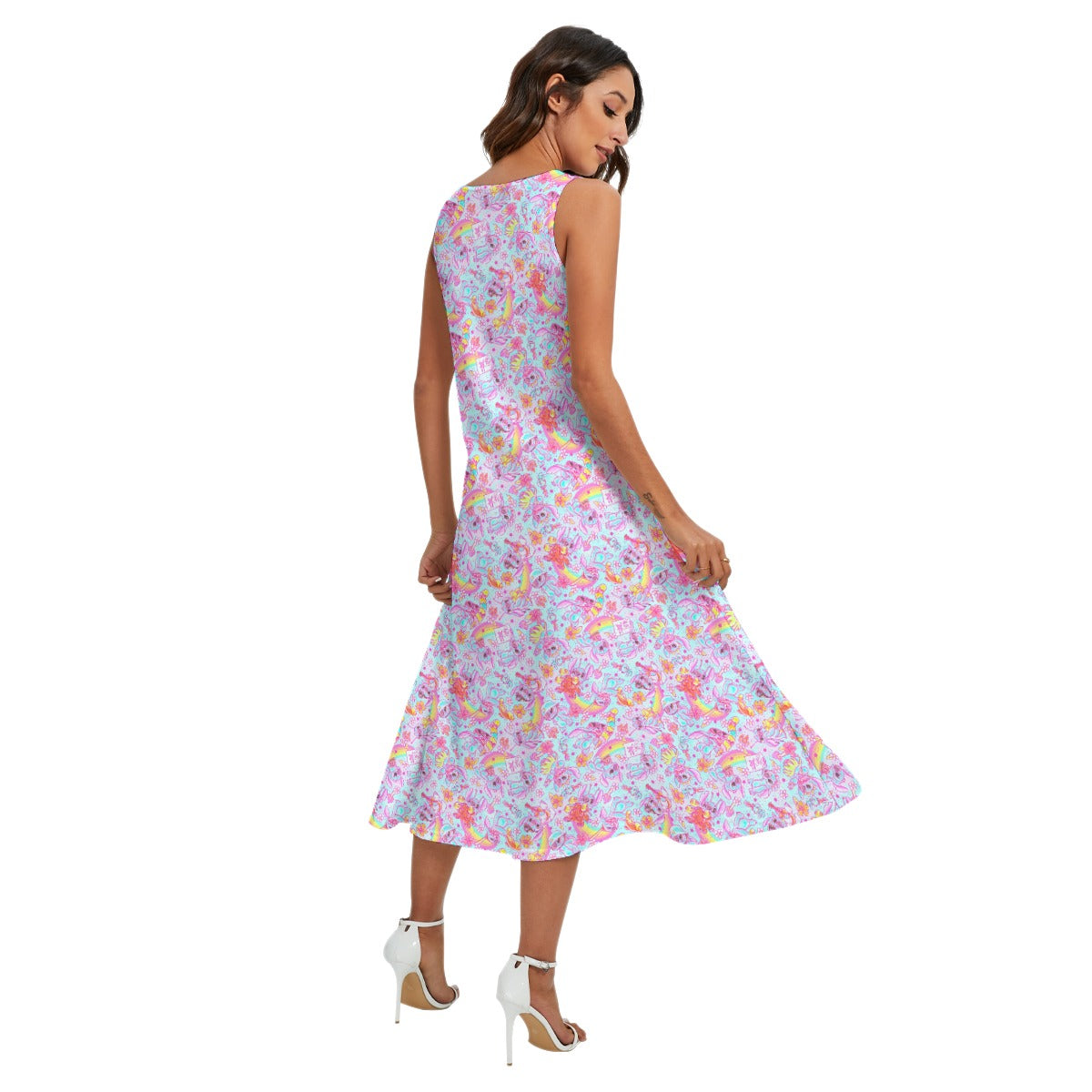 Neon Rainbow Mischief - Women’s Diagonal Pocket Midi Dress